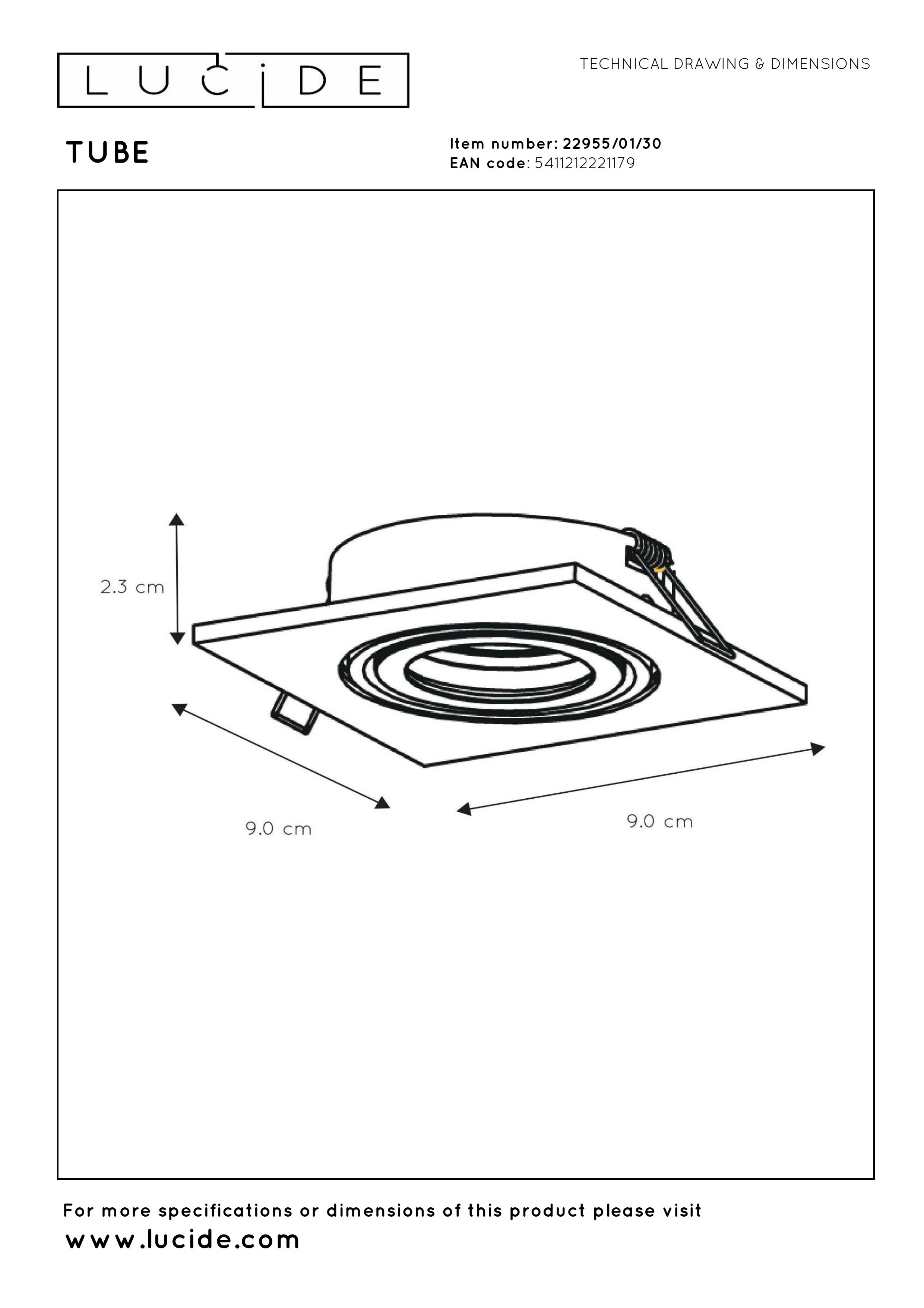 Lucide TUBE - Spot encastrable - 1xGU10 - Noir