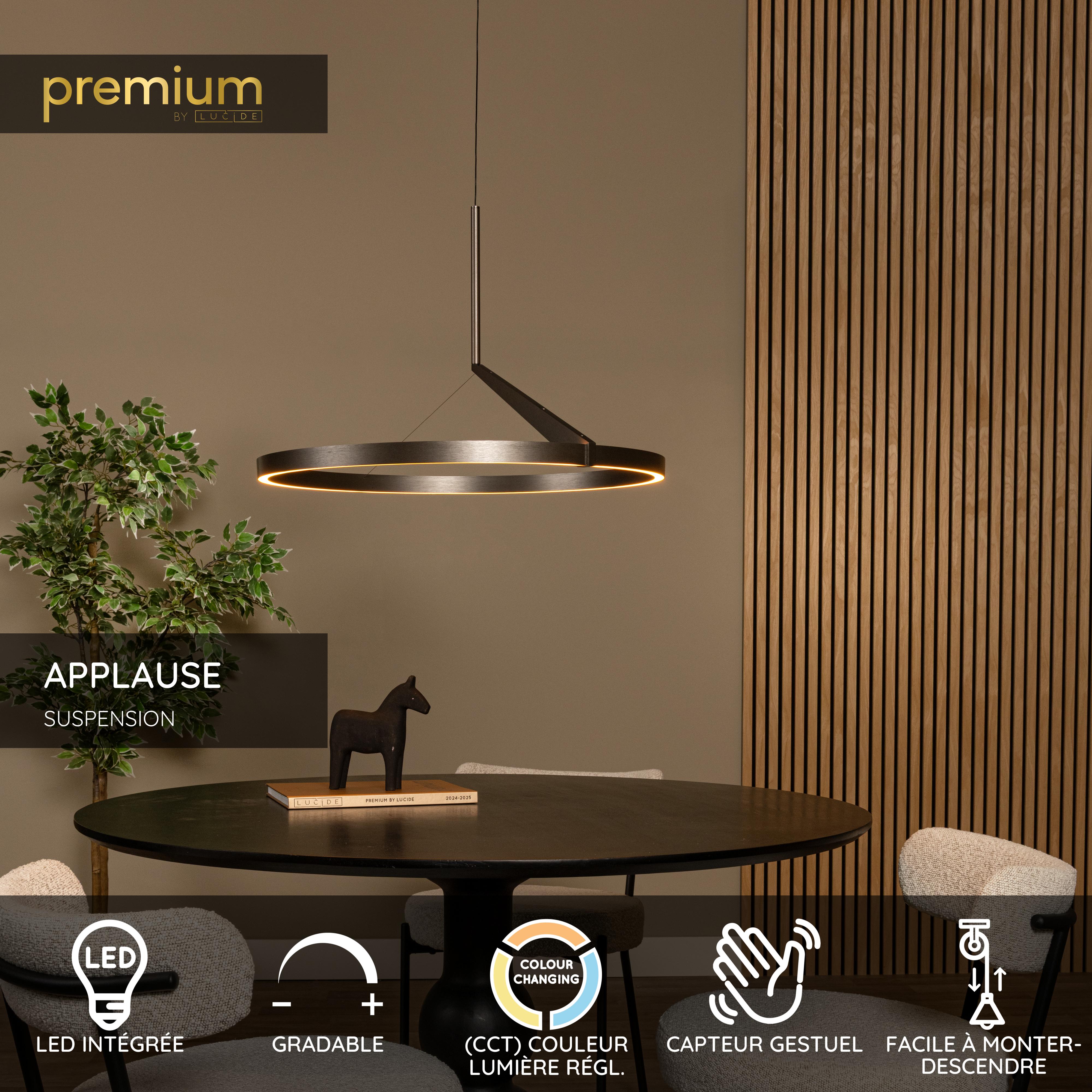Lucide APPLAUSE - Suspension - Ø 60 cm - LED Dim. - CCT - 1x32W 2700K/4000K - Détecteur à balayage manuel - Fer gris | Premium