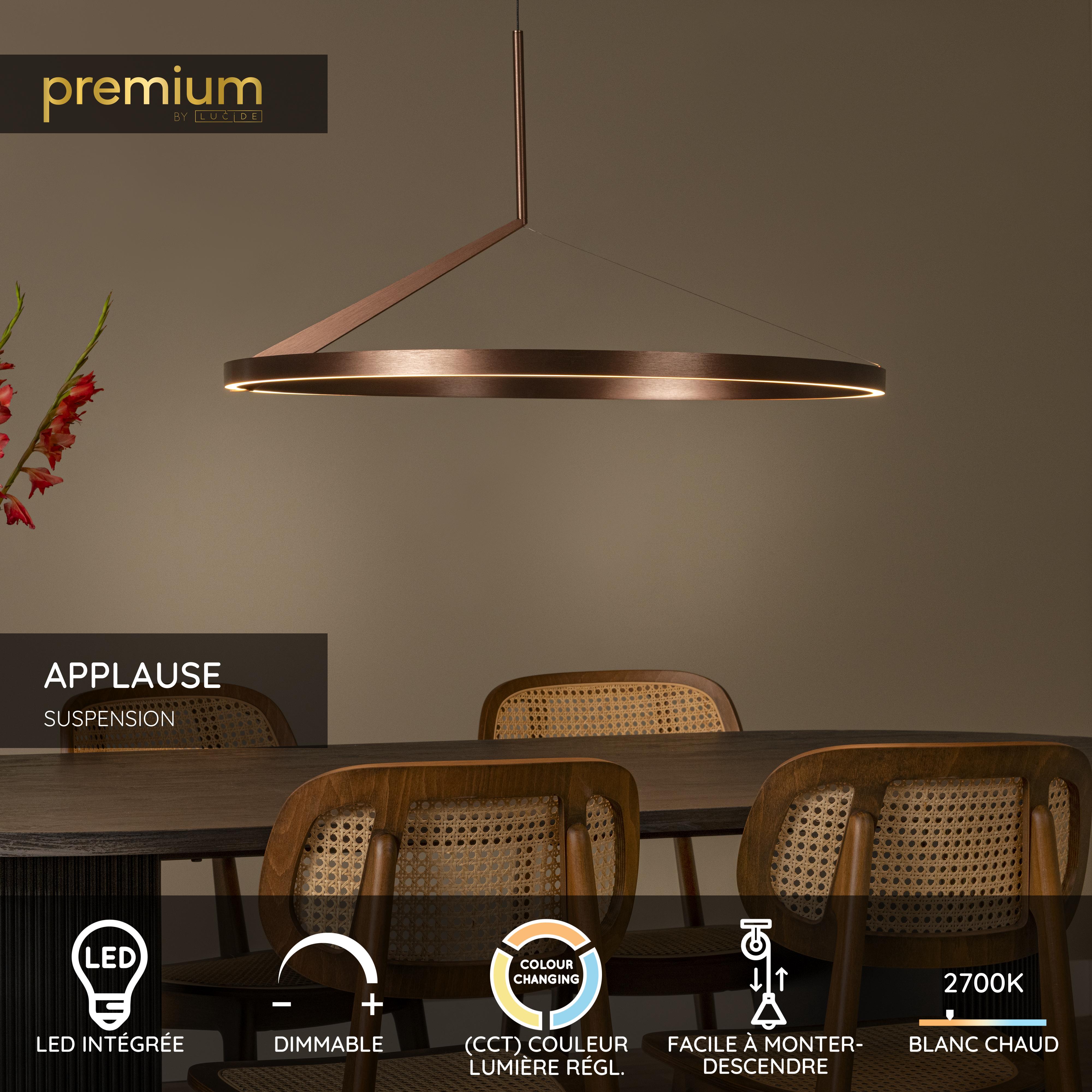 Lucide APPLAUSE - Suspension - Ø 80 cm - LED Dim. - CCT - 1x50W 2700K/4000K - Détecteur à balayage manuel - Café | Premium