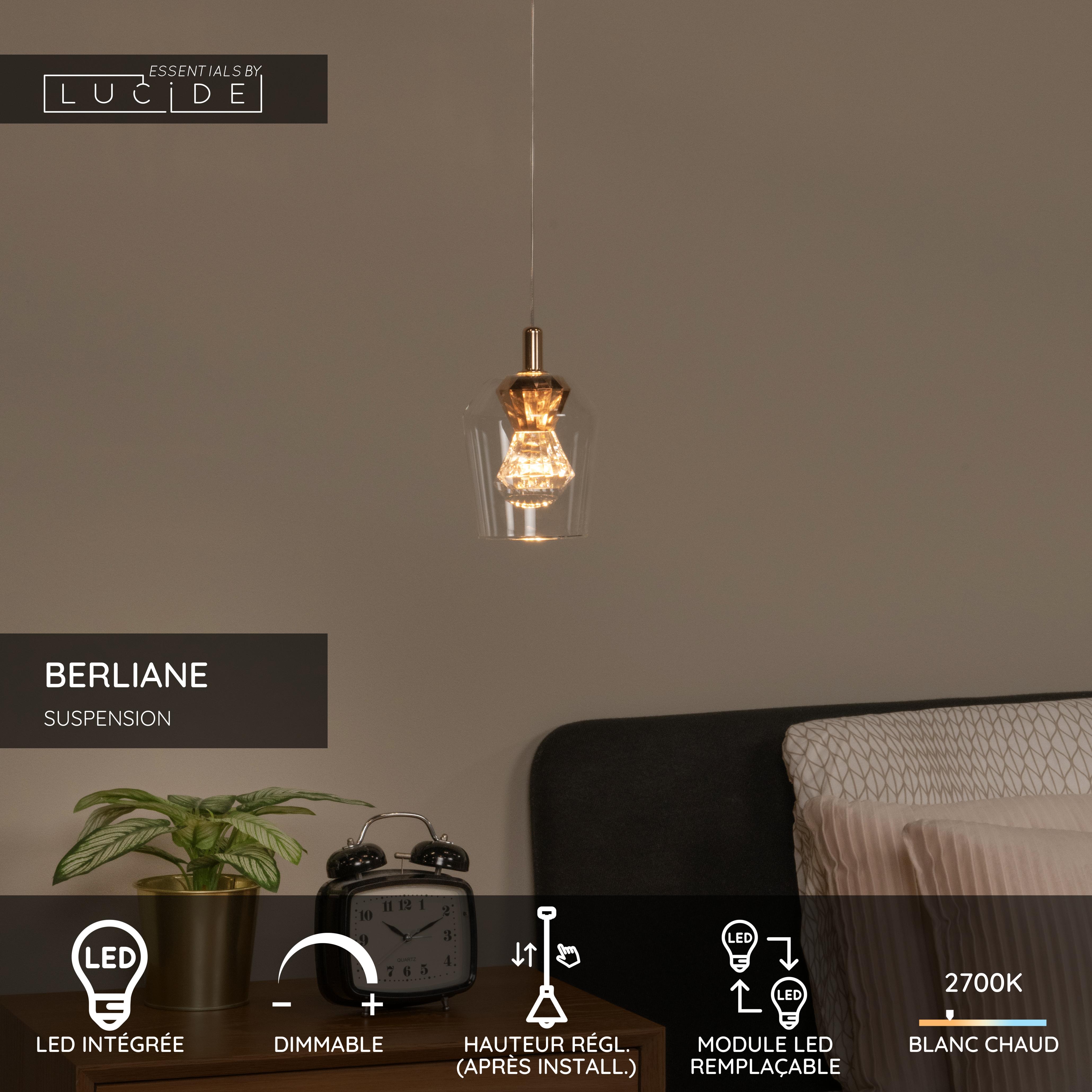 Lucide BERLIANE - Suspension - Ø 12 cm - LED Dim. - 1x4W 2700K - Avec module LED remplaçable - Transparent | Essential