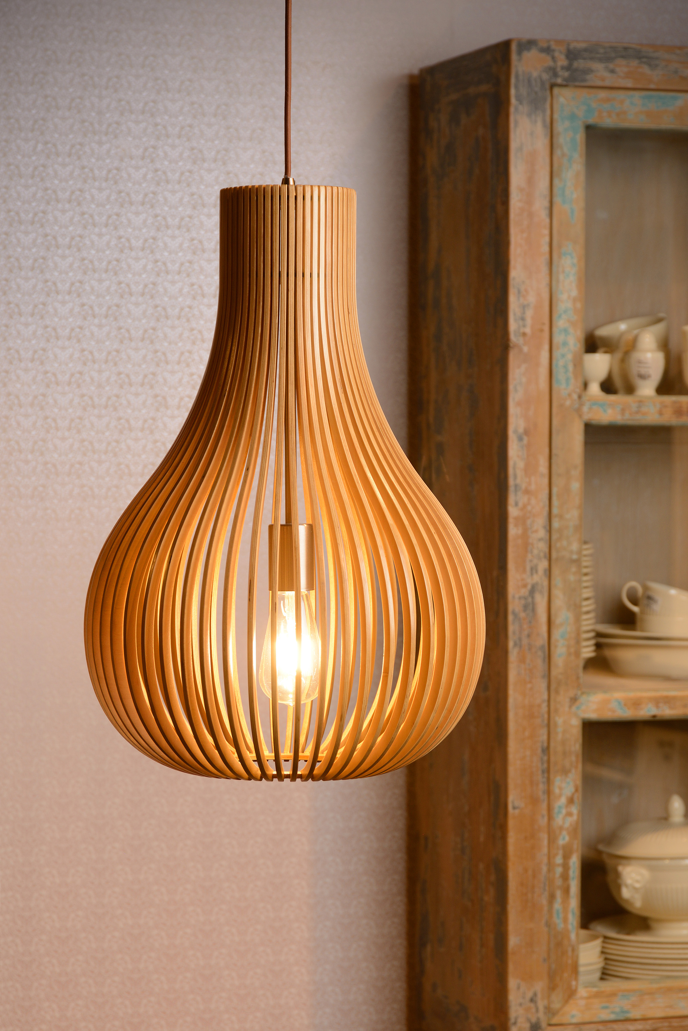 Lucide BODO - Suspension - Ø 38 cm - 1xE27 - Bois clair