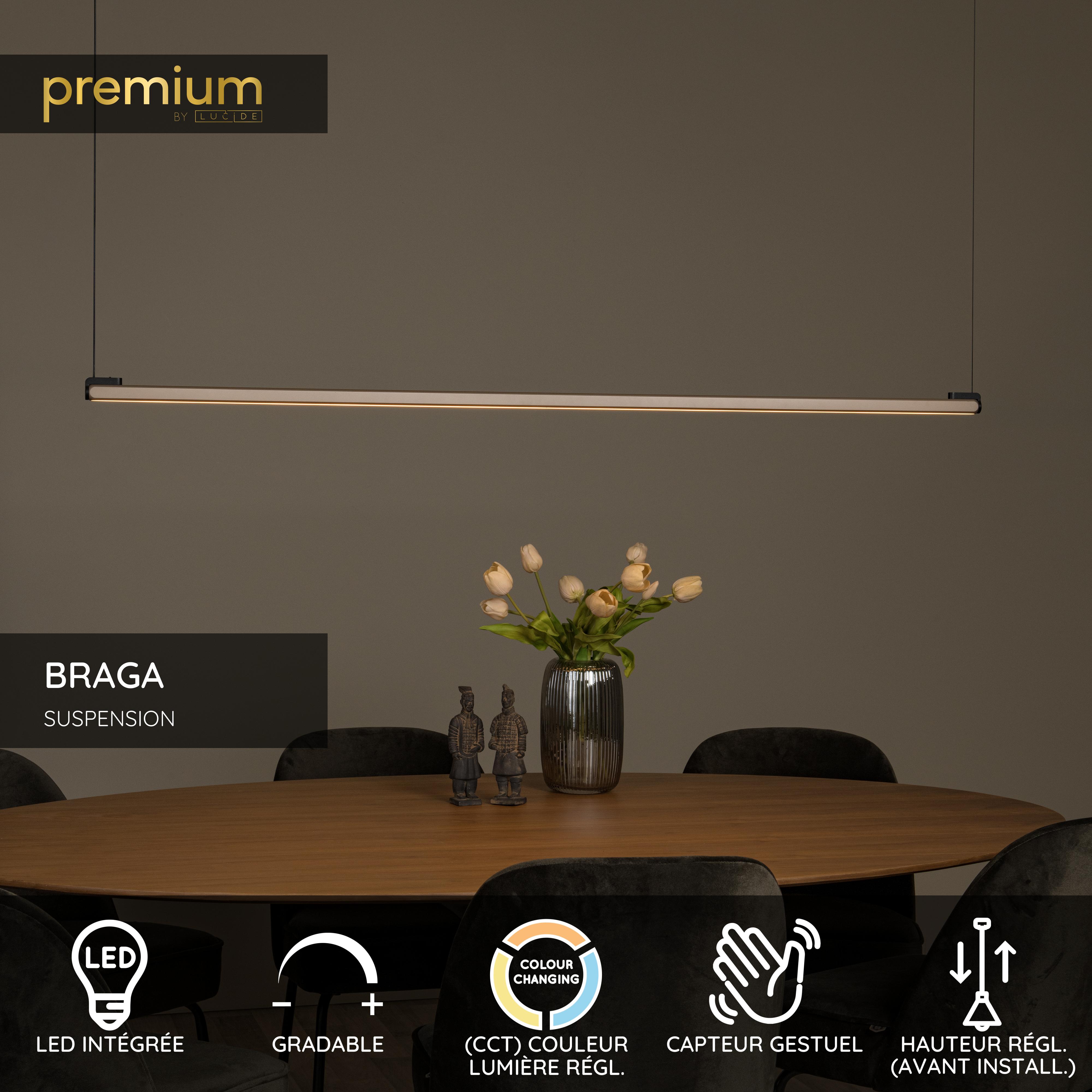 Ajoutez une touche de luxe à votre intérieur avec la suspension Lucide BRAGA de la collection Premium. Cette suspension moderne et élégante est fabriquée en aluminium de haute qualité et arbore une finition marron café raffinée. Avec son design rectangulaire épuré et son éclairage LED intégré, la BRAGA offre une source lumineuse subtile mais impressionnante pour les salles à manger, cuisines ou salons. Grâce à son capteur de mouvement, sa température de couleur réglable (2700K-4000K) et sa fonction de variation d’intensité, vous pouvez ajuster la luminosité et la température de couleur d’un simple geste, créant ainsi l’ambiance idéale, du blanc chaud à une lumière de travail vive. Avec une longueur de 150 cm, une largeur de 5 cm et une hauteur de 207,9 cm, cette suspension s’adapte parfaitement au-dessus d’une table à manger ou d’un îlot de cuisine. De plus, elle est réglable en hauteur lors de l’installation, vous permettant de l’adapter selon vos besoins. Profitez de la combinaison entre technologie avancée et design raffiné avec la suspension Lucide BRAGA. Commandez-la dès aujourd’hui et sublimez votre intérieur avec un éclairage haut de gamme !