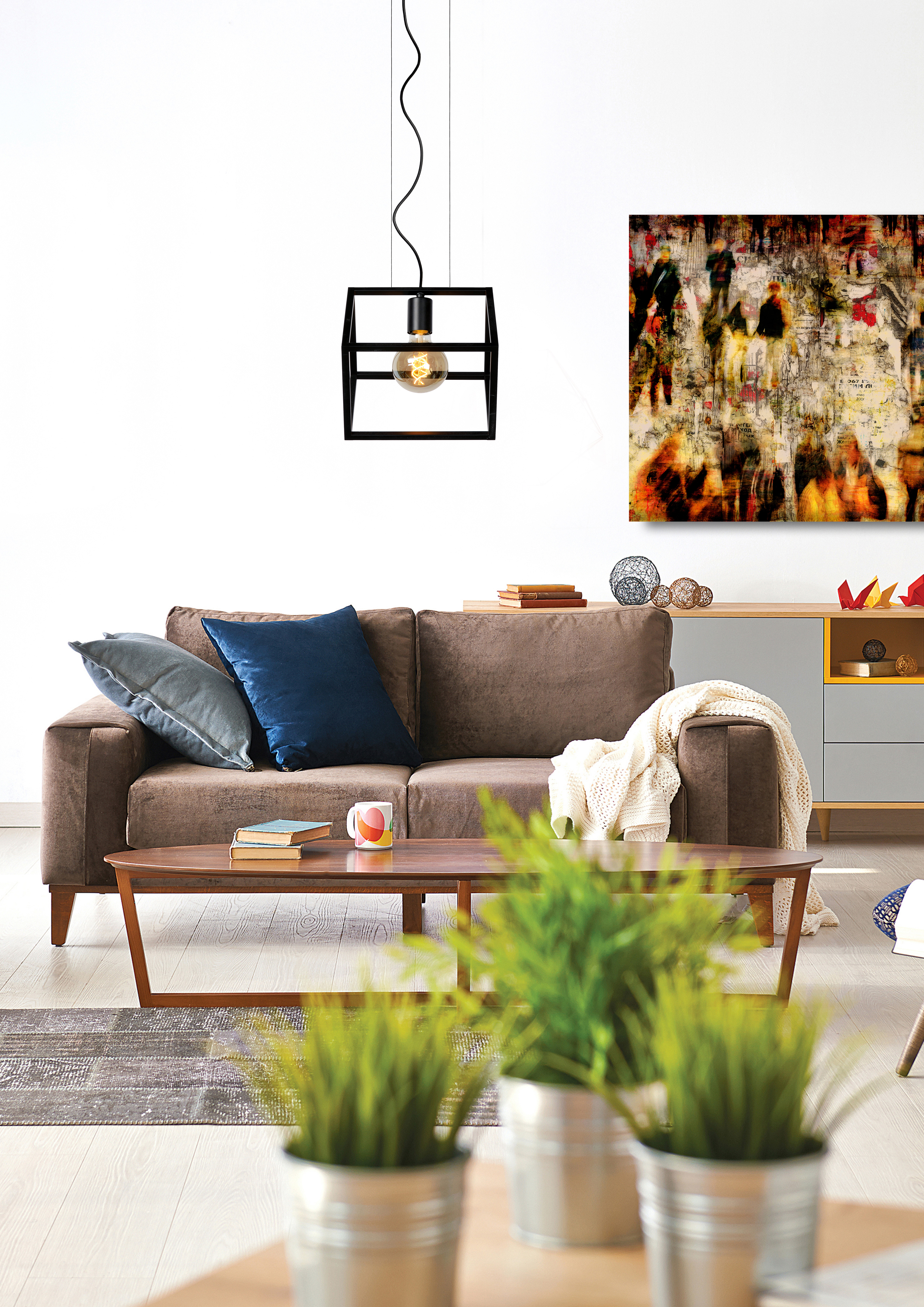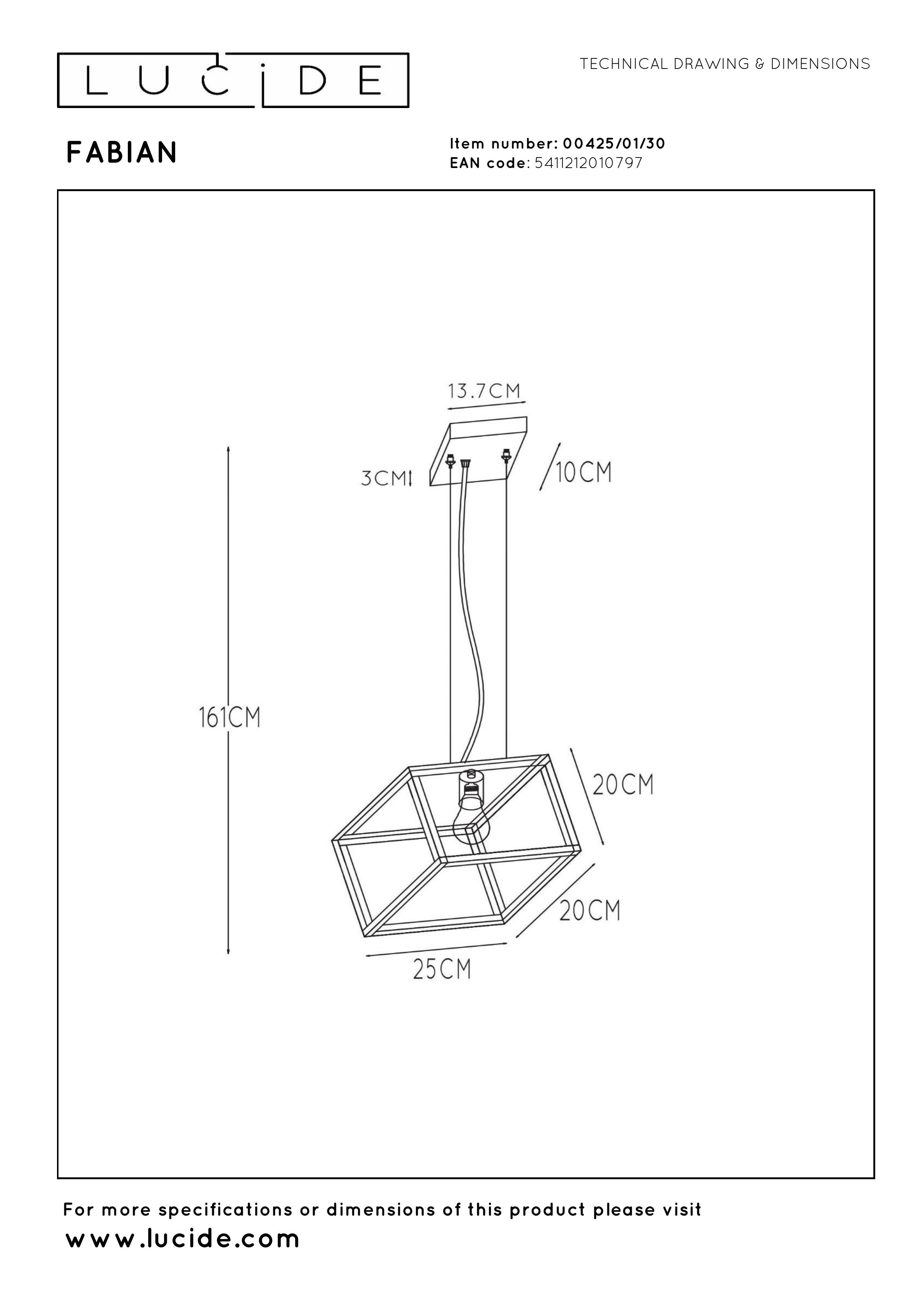 Vous pensez qu'une lampe suspendue est bien plus qu'un simple luminaire ? Un style épuré et des lignes droites pour chasser l'ennui. Fabian laisse joliment à découvert la source de lumière enfermée dans sa cage cubique ajourée. Sa structure inclinée confère à Fabian un look unique. Combinée à une ampoule LED douce ou à une jolie ampoule à filament, elle constitue le partenaire idéal de votre nid douillet. Fabian apporte également une ambiance chaleureuse à votre table. Cette lampe métallique est réglable en hauteur jusqu'à 161 centimètres. Branchez-la à un variateur d'intensité pour créer instantanément l'atmosphère de votre choix.