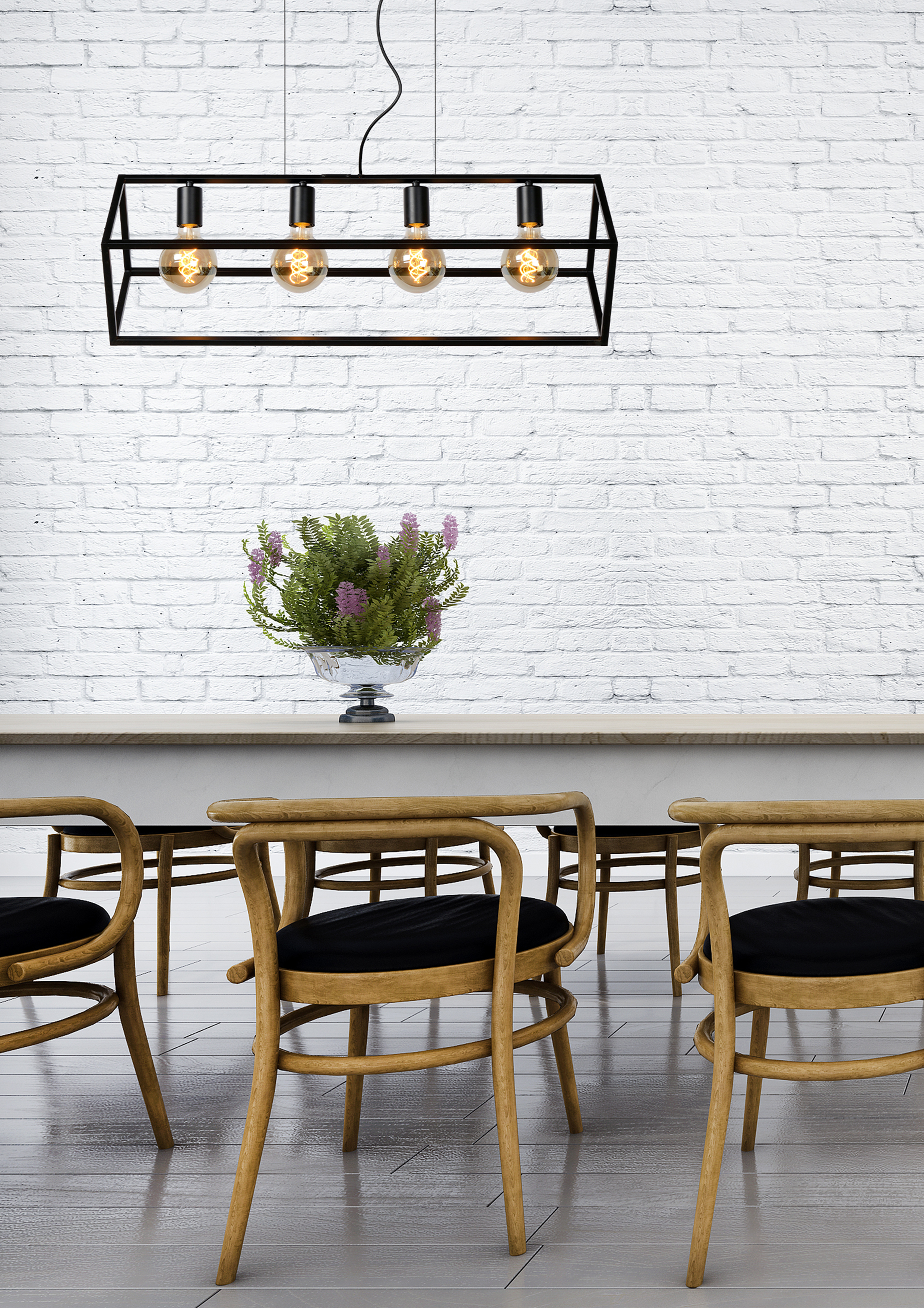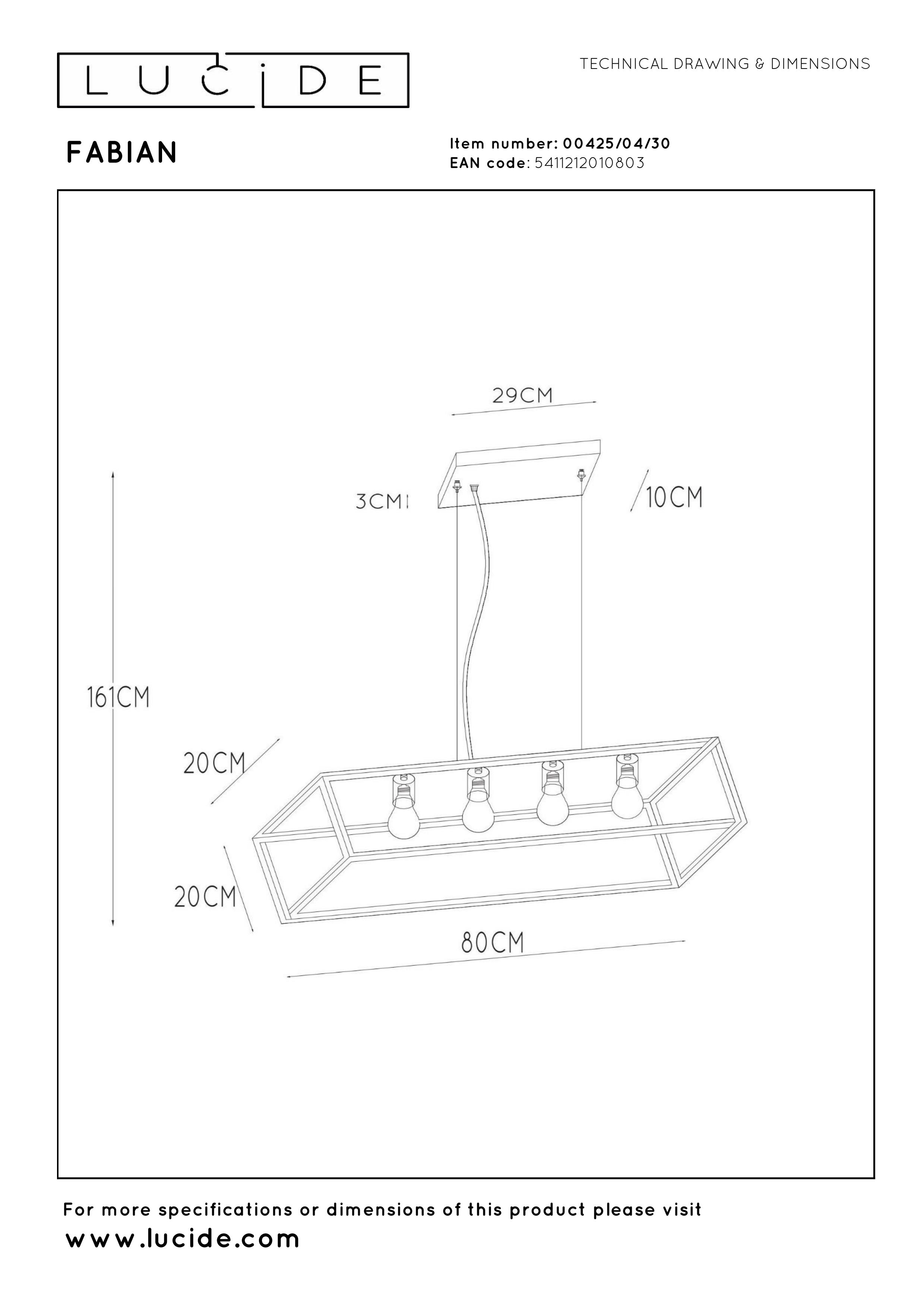 Votre intérieur est de style épuré avec une touche de fantaisie ? Dans ce cas, Fabian devrait y trouver sa place. Cette lampe à suspension en métal associe design contemporain et touche de folie. Quel que soit l'angle depuis lequel vous la regardez, il est impossible d'échapper à la disposition intrigante de Fabian. Son cadre rectangulaire peut accueillir quatre sources lumineuses mises en valeur par la structure ouverte. Parfait au-dessus de la table à manger. La hauteur de Fabian peut être ajustée jusqu'à un maximum de 161 centimètres. Branchez le luminaire à un variateur d'intensité pour profiter de l'intensité lumineuse idéale à tout moment de la journée.