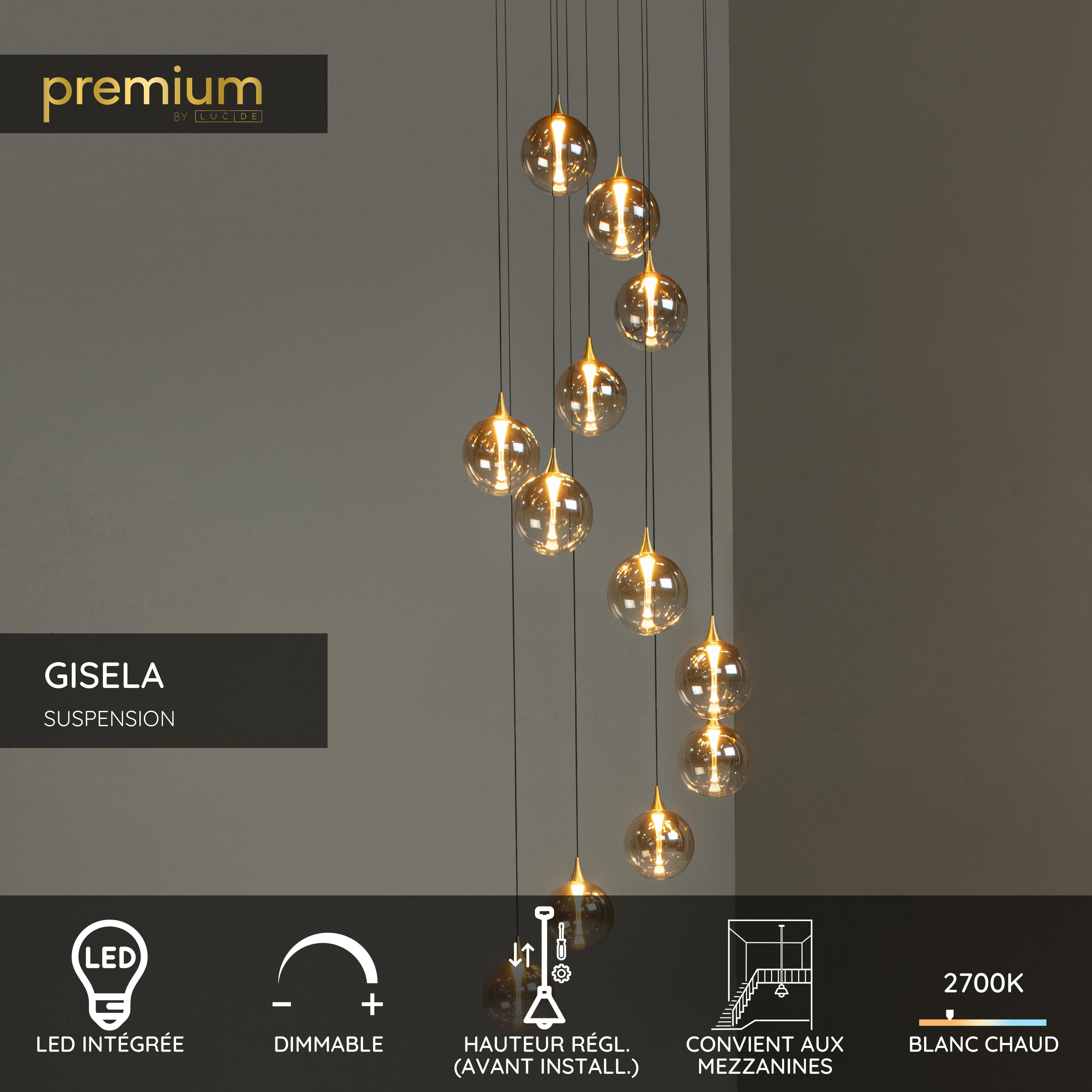 Lucide GISELA - Suspension - Ø 61 cm - LED Dim. - 12x3,5W 2700K - Convient aux mezzanines et plafonds hauts - Ambre | Premium
