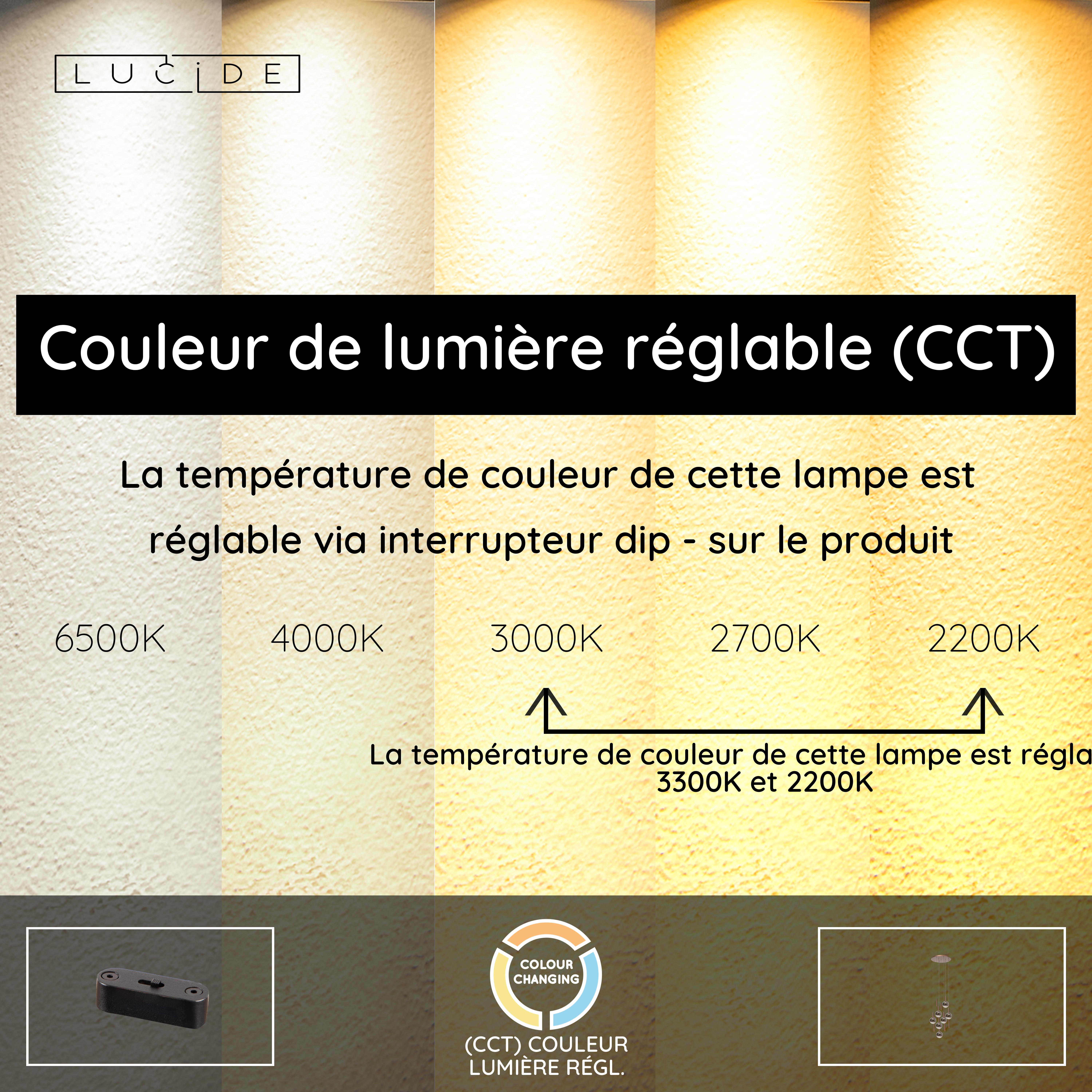 - Température de couleur réglable via interrupteur dip sur le produit (2200K-3300K)