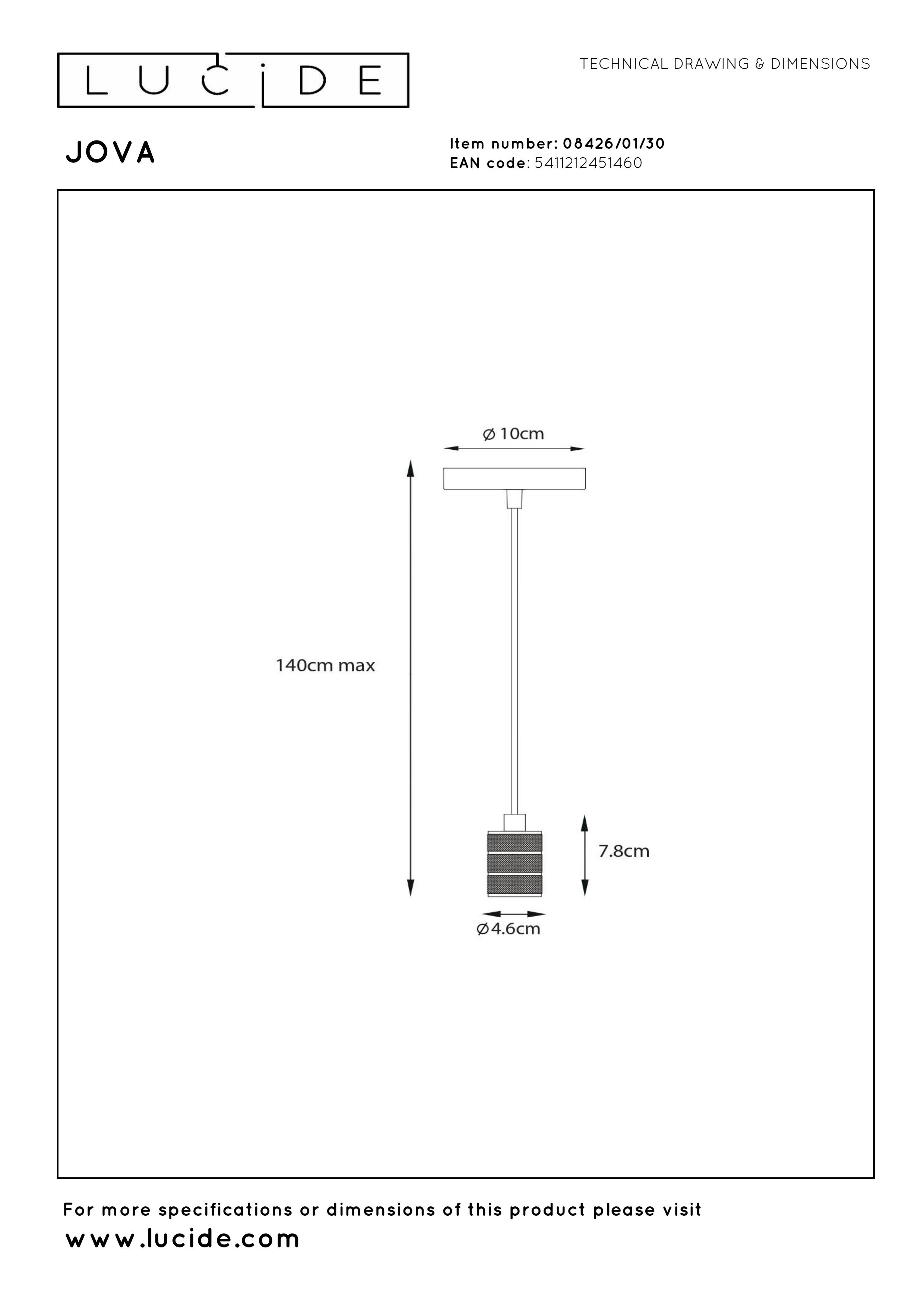 Lucide JOVA - Suspension - Ø 10 cm - 1xE27 - Noir