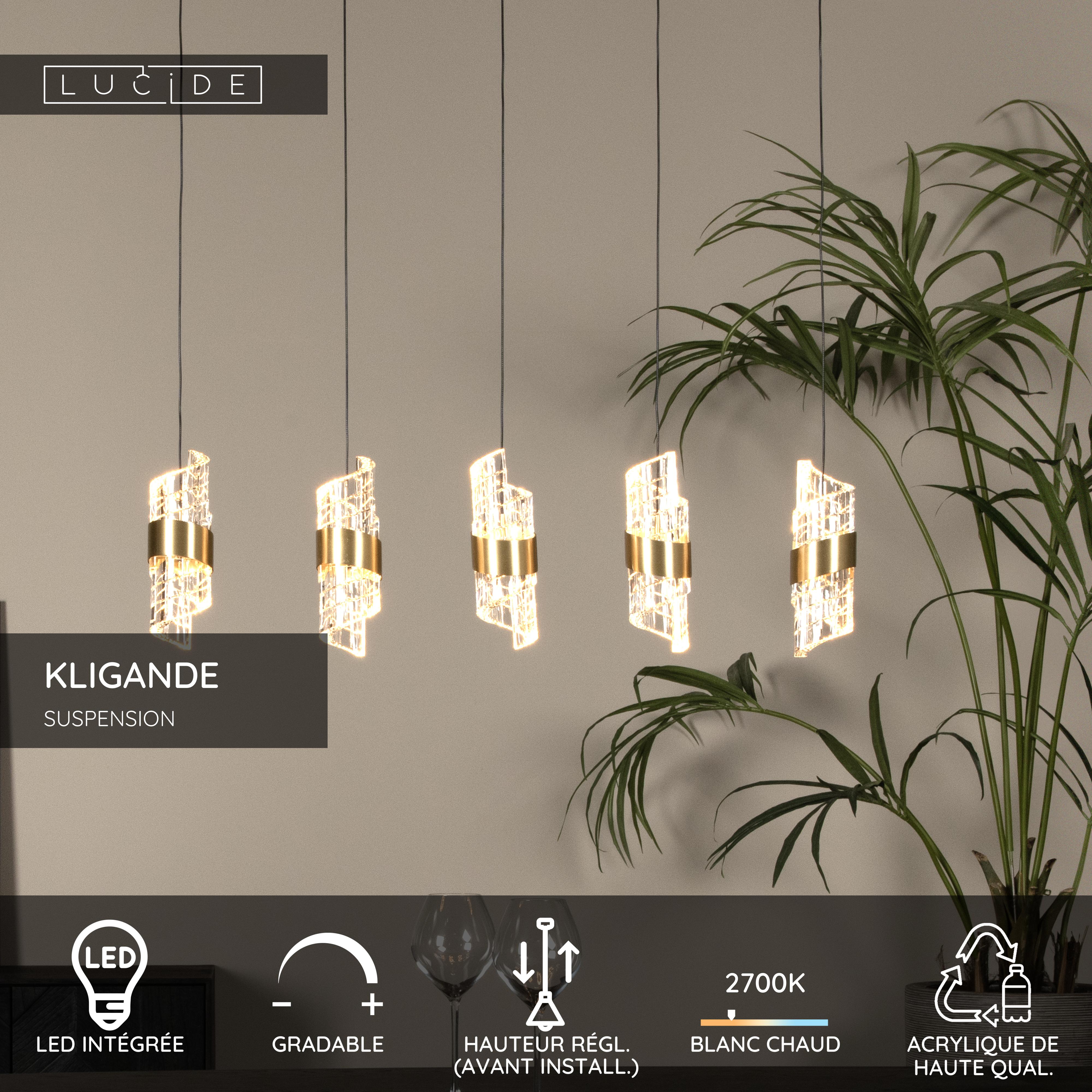 Lucide KLIGANDE - Suspension - LED Dim. - 5x7,8W 2700K - Or Mat / Laiton