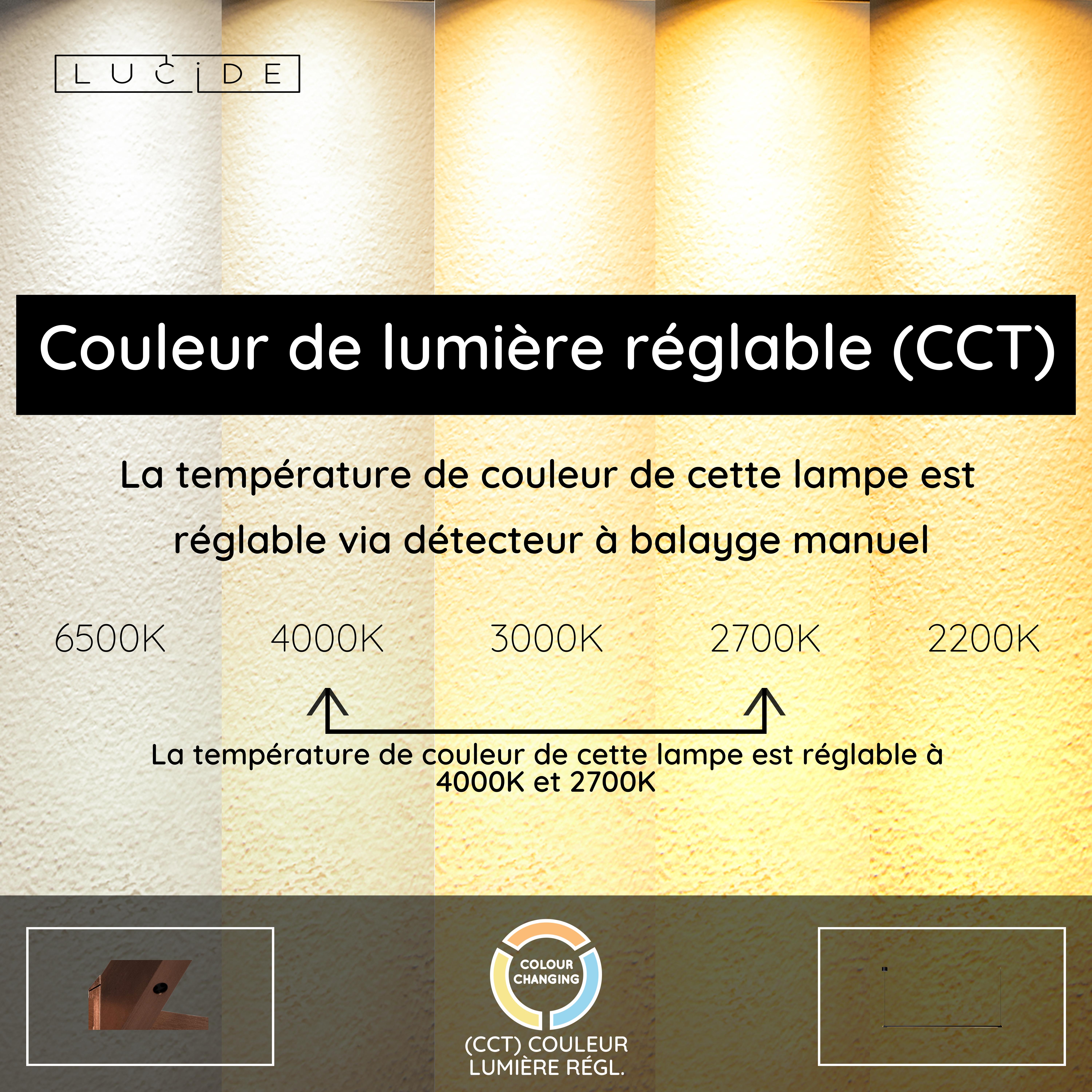 - Température de couleur réglable via détecteur à balayge manuel (2700K-4000K)