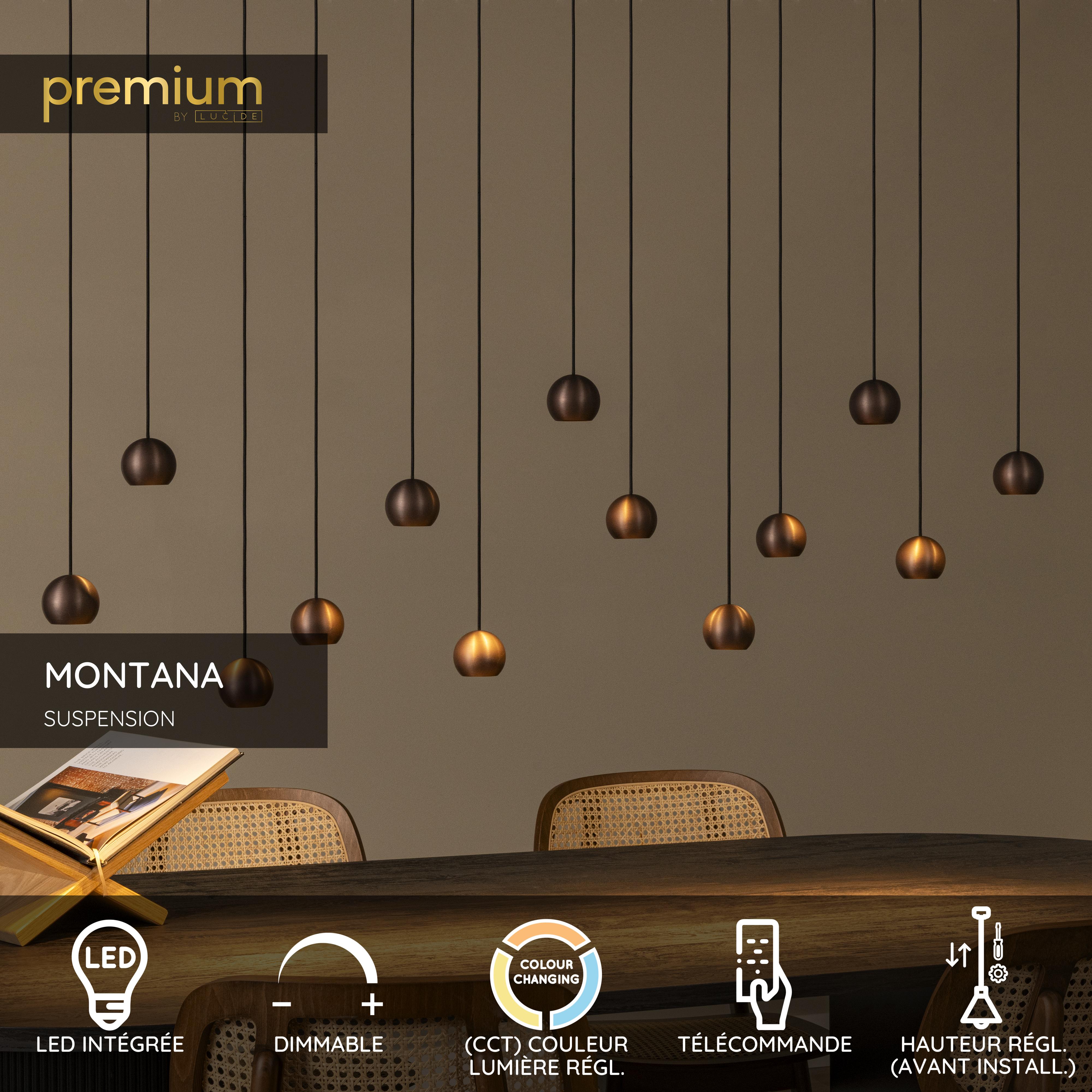 Lucide MONTANA - Suspension - LED Dim. - CCT - 13x5,7W 2700K/4000K - Convient aux mezzanines et plafonds hauts - Café | Premium