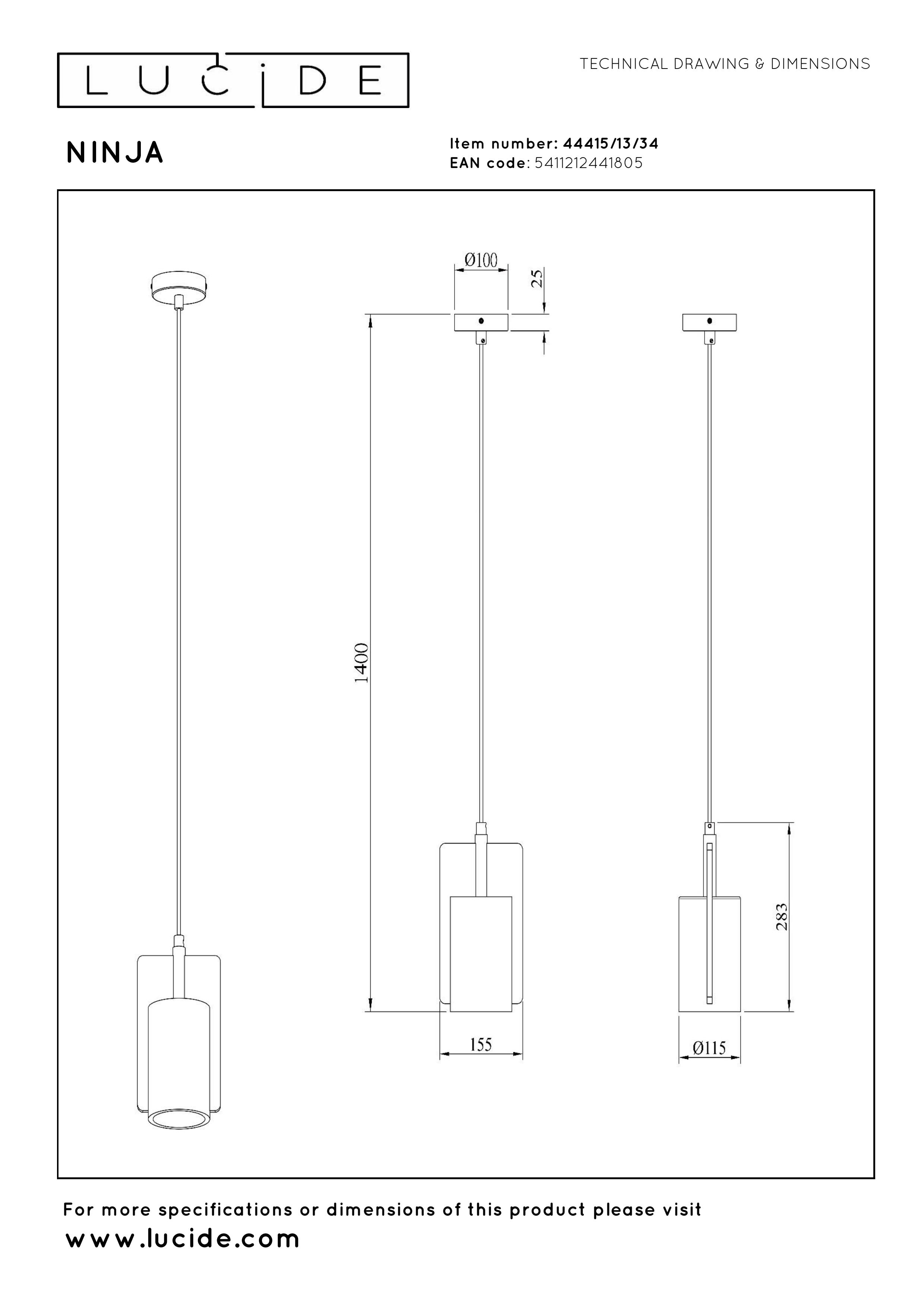 Lucide NINJA - Suspension - Ø 11,5 cm - 1xE27 - Jaune