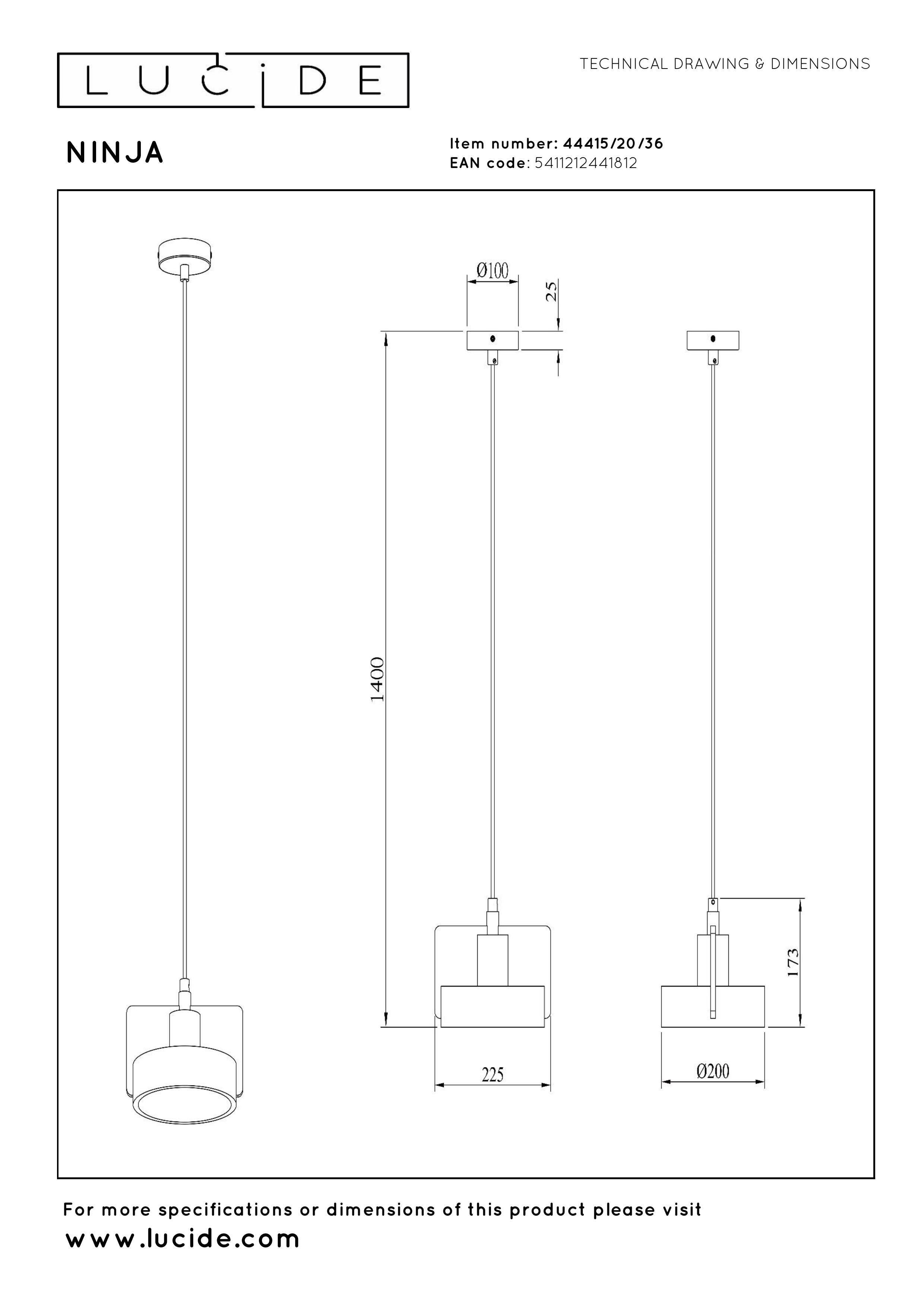 Lucide NINJA - Suspension - Ø 20 cm - 1xE27 - Gris