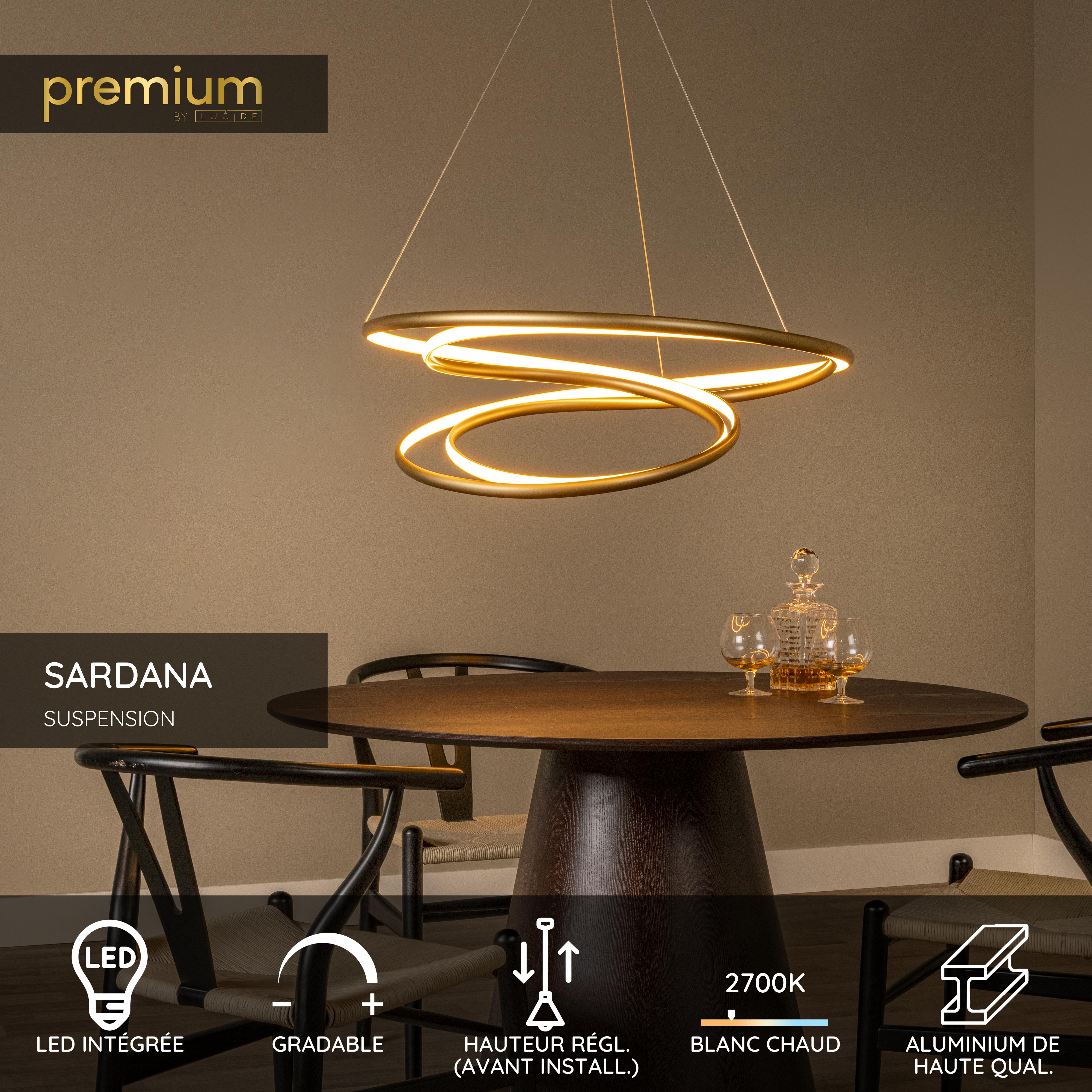 Lucide SARDANA - Suspension - Ø 80 cm - LED Dim. - 1x74W 2700K - Or Mat / Laiton | Premium