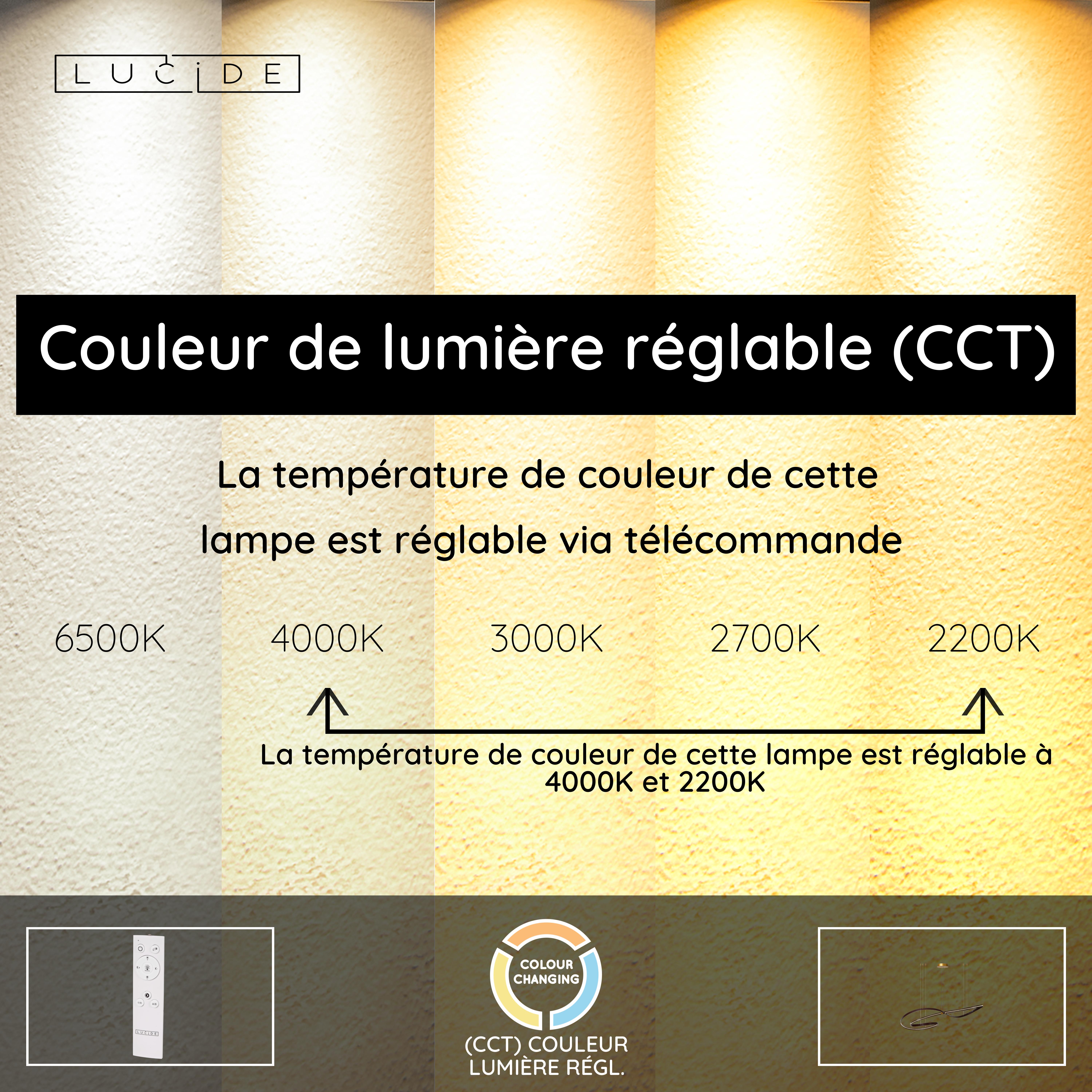- Température de couleur réglable via télécommande (2200K-4000K)