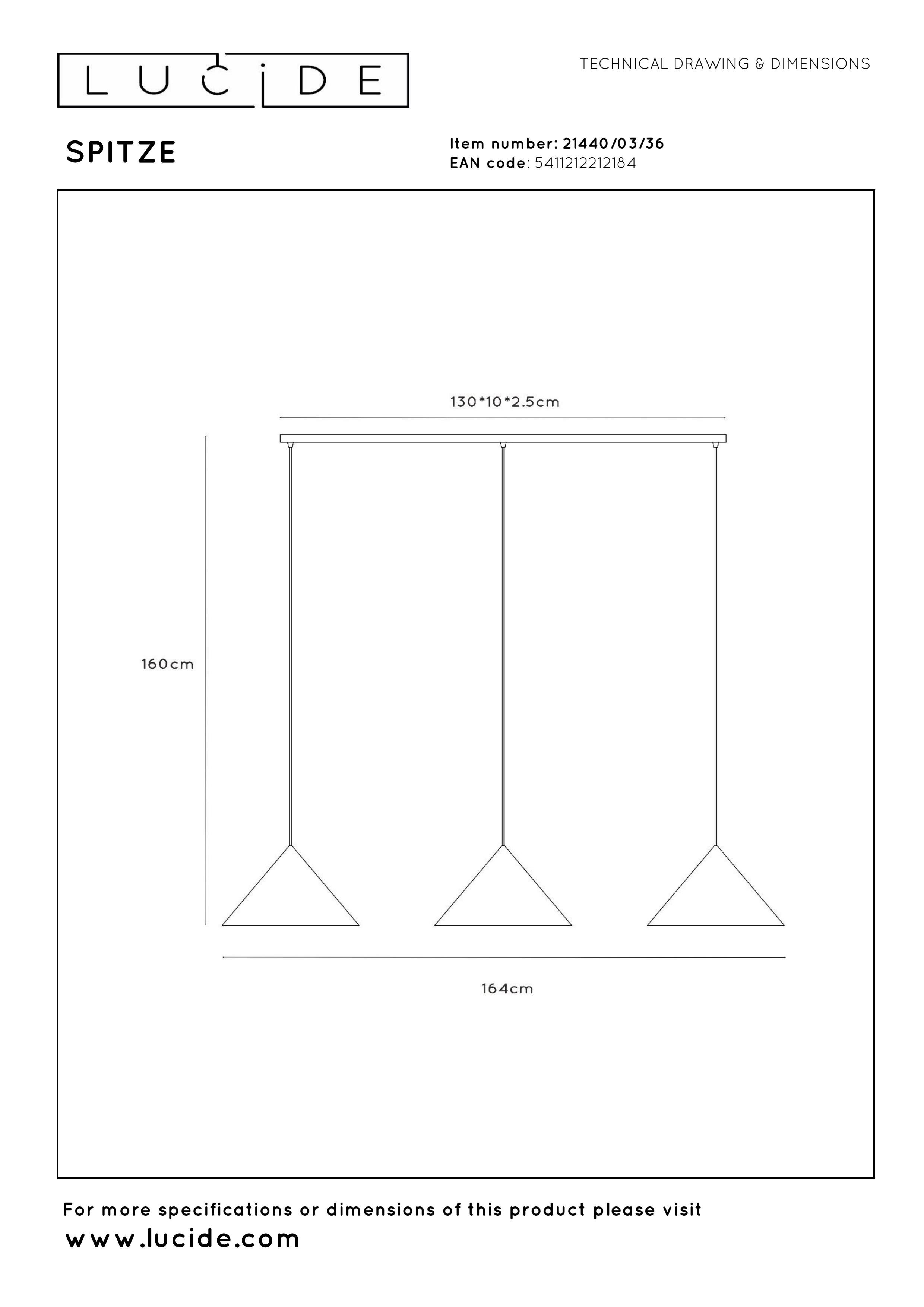 Affirmez votre style avec la suspension SPITZE de Lucide en gris. Cette suspension robuste allie design moderne et raffinement fonctionnel, et est fabriquée en fer thermolaqué mat de haute qualité. Dotée de trois douilles E27 (jusqu’à 40W chacune, dimmables via variateur externe), SPITZE offre une diffusion lumineuse impressionnante au-dessus des tables à manger, cuisines ou salons. Les trois abat-jour coniques diffusent une lueur élégante et douce. Cette suspension est réglable en hauteur avant installation, pour une adaptation parfaite à votre intérieur. Avec une longueur de 164 cm, une largeur de 40 cm et une hauteur maximale de 160 cm, SPITZE est un véritable point focal. Élevez votre éclairage intérieur avec SPITZE !