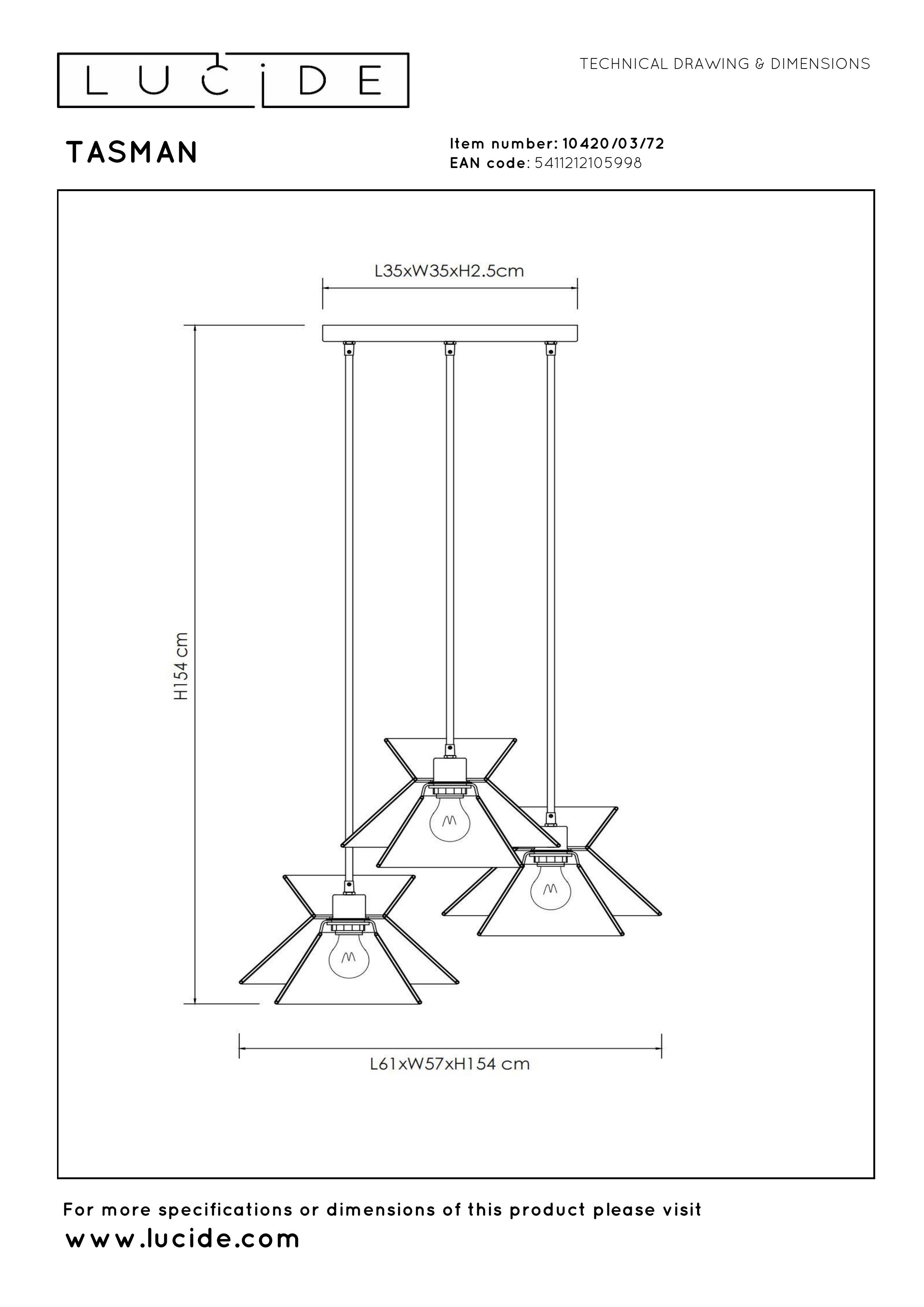 Lucide TASMAN - Suspension - 3xE27 - Naturel