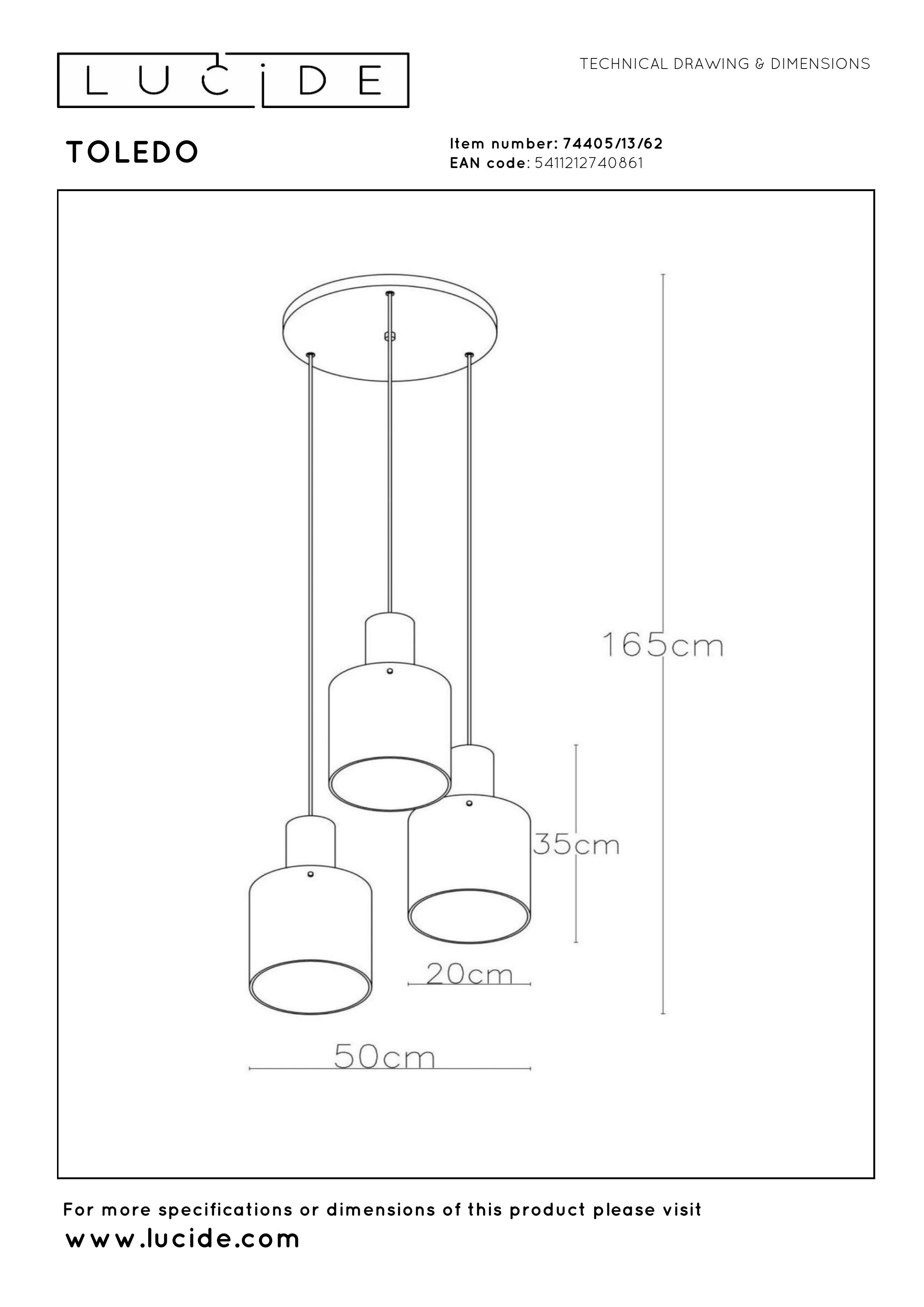 Lucide TOLEDO - Suspension - 3xE27 - Ambre