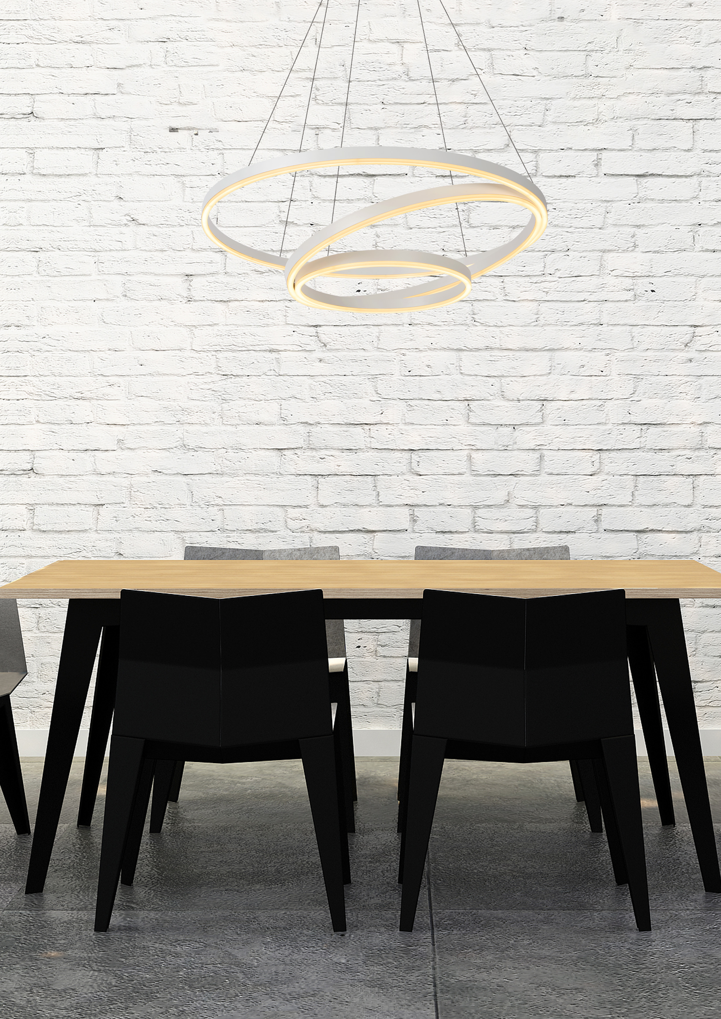 Trois anneaux de lumière sont presque intriqués, mais séparés les uns des autres. Cette suspension n'a pas volé son nom. Triniti représente la Sainte Trinité. Accrocher les anneaux à la hauteur souhaitée avant l'installation (minimum 60 et maximum 135 centimètres du plafond). Grâce aux fins câbles de connexion entre la plaque de montage et les sources lumineuses elles-mêmes, les faisceaux lumineux semblent flotter au-dessus de votre table. Une fois connecté à un variateur, vous déterminez vous-même la luminosité des LED intégrées.