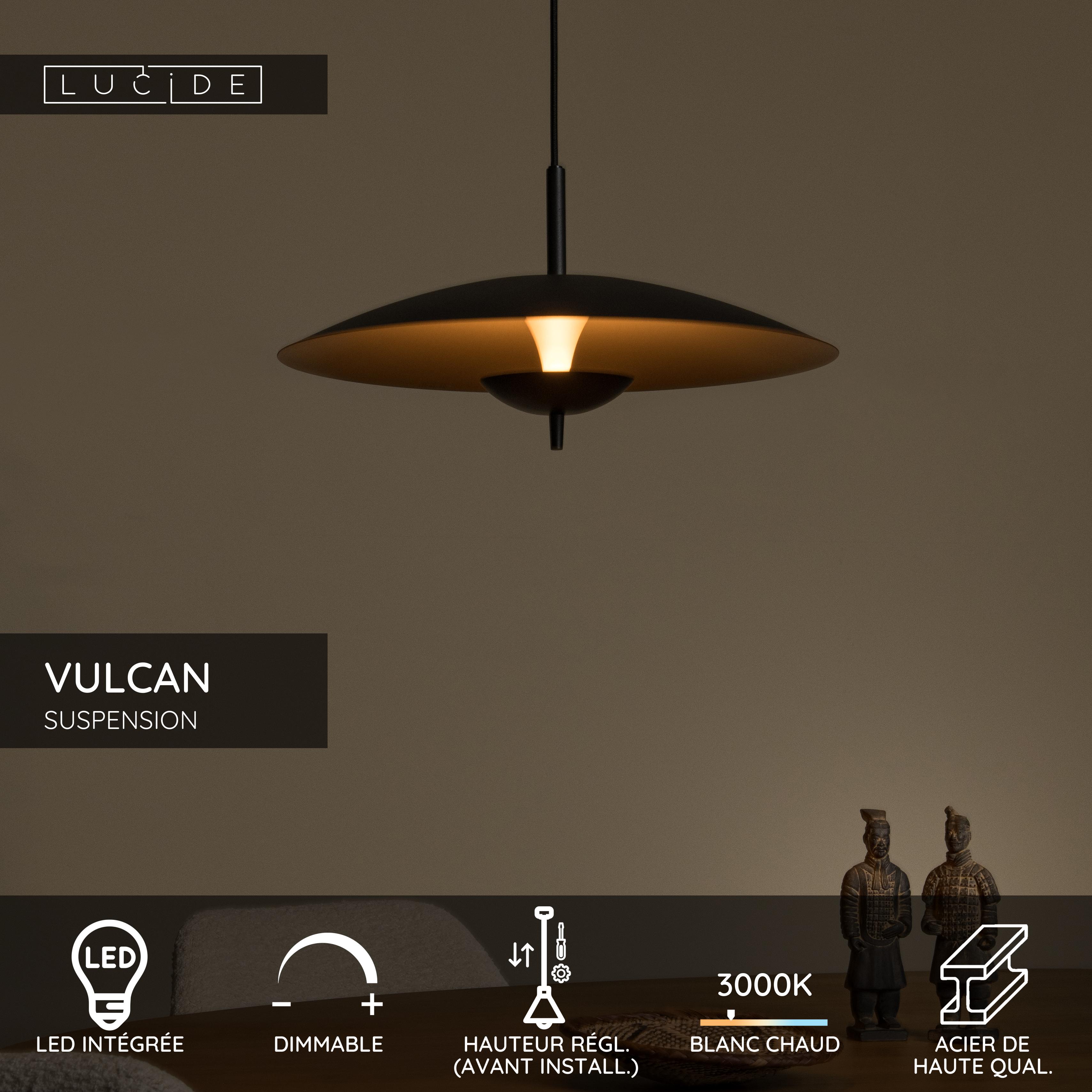 Subtile et éblouissante, moderne mais chaleureuse : comme une éruption de style et d'innovation, Vulcan apporte la magie d'un volcan à votre intérieur. Vulcan est une élégante suspension en acier qui diffuse une lumière tamisée et chaude. De plus, la suspension est facilement réglable en hauteur. Le créateur d'atmosphère idéale à table ou dans le salon, où design et fonctionnalité se conjuguent dans un spectacle époustouflant de lumière et de forme. Vulcan a un diamètre de 47 centimètres, avec une plaque de montage qui mesure 10 centimètres de diamètre, et est équipé d'une lampe LED intégrée.