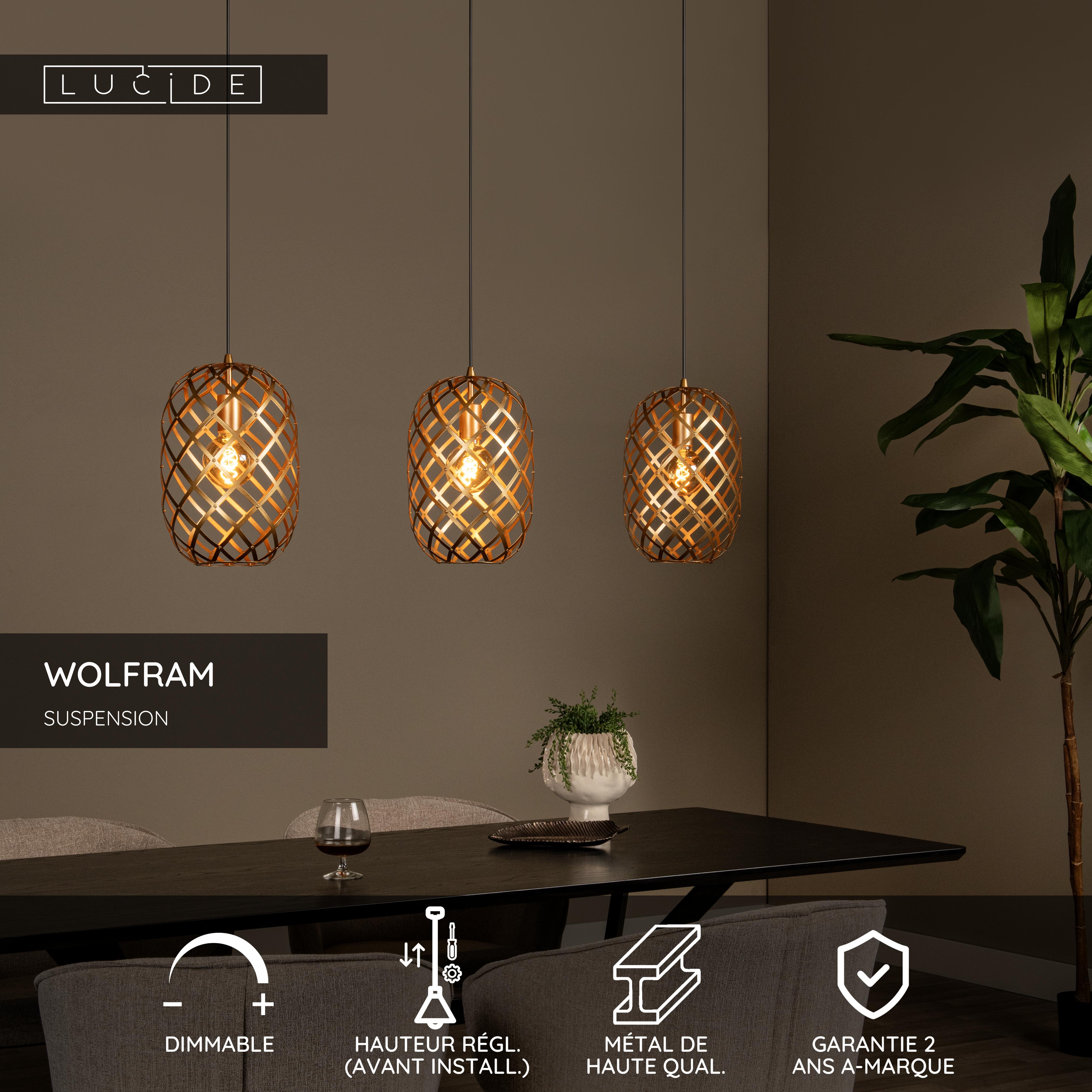 Lucide WOLFRAM - Suspension - 3xE27 - Or Mat / Laiton