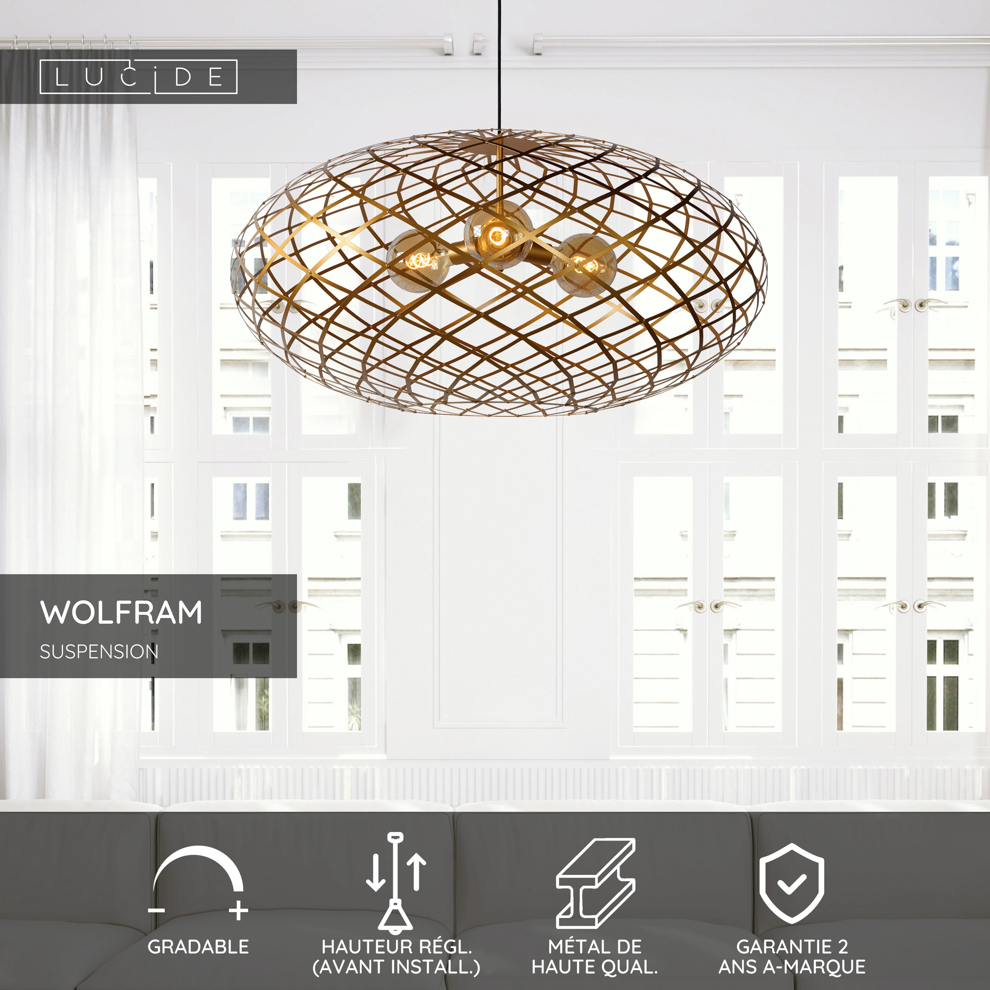 Lucide WOLFRAM - Suspension - Ø 100 cm - 3xE27 - Or Mat / Laiton