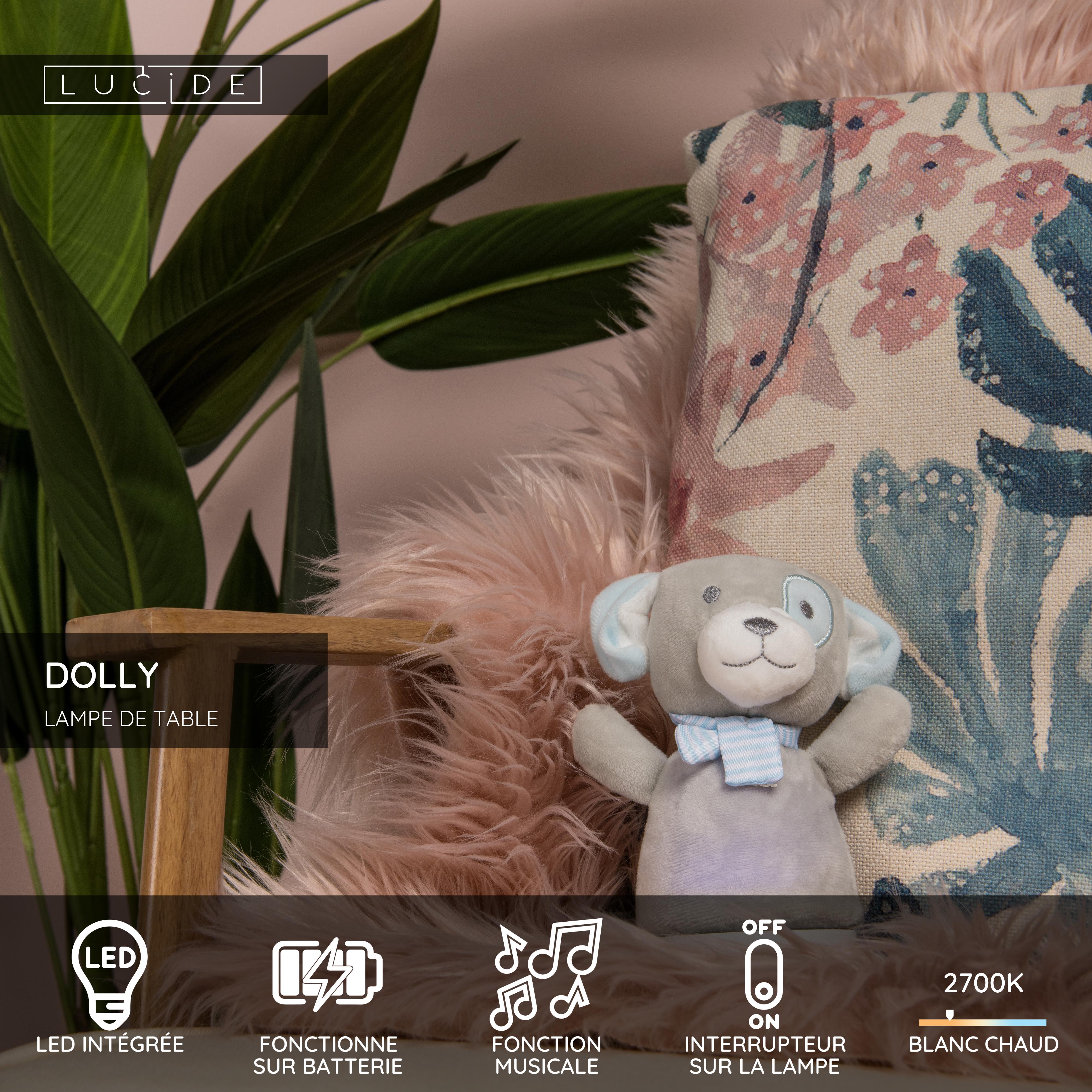 Lucide DOLLY - Lampe de table Chambres d'enfant - Piles - LED - 1x3W 2700K - Avec fonctionnalité musicale - Gris