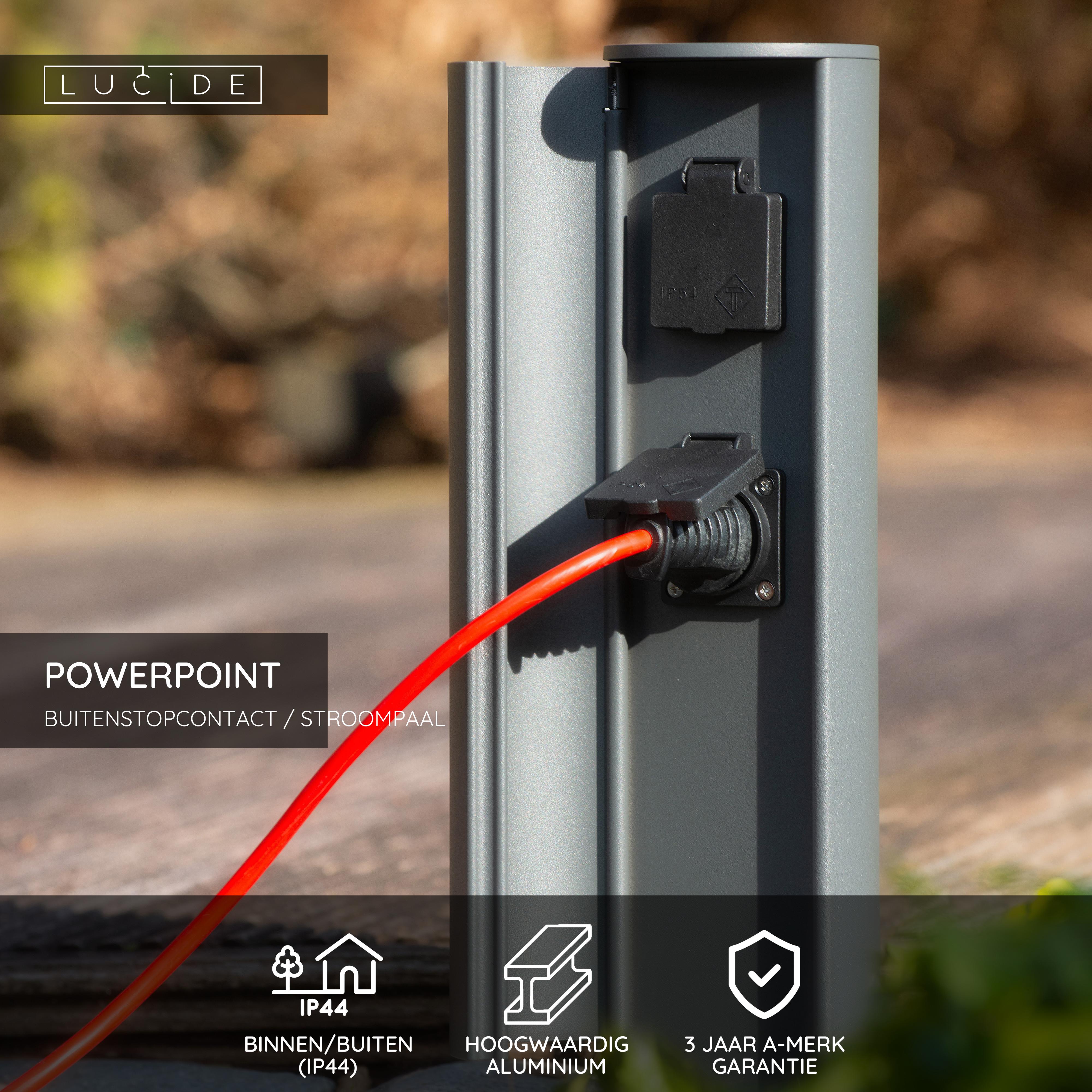 Lucide POWERPOINT - Buitenstopcontact zuil - Stopcontacten met randaarde - Type F - EUR/RUS standaard - Ø 10 cm - IP44 ? Antraciet