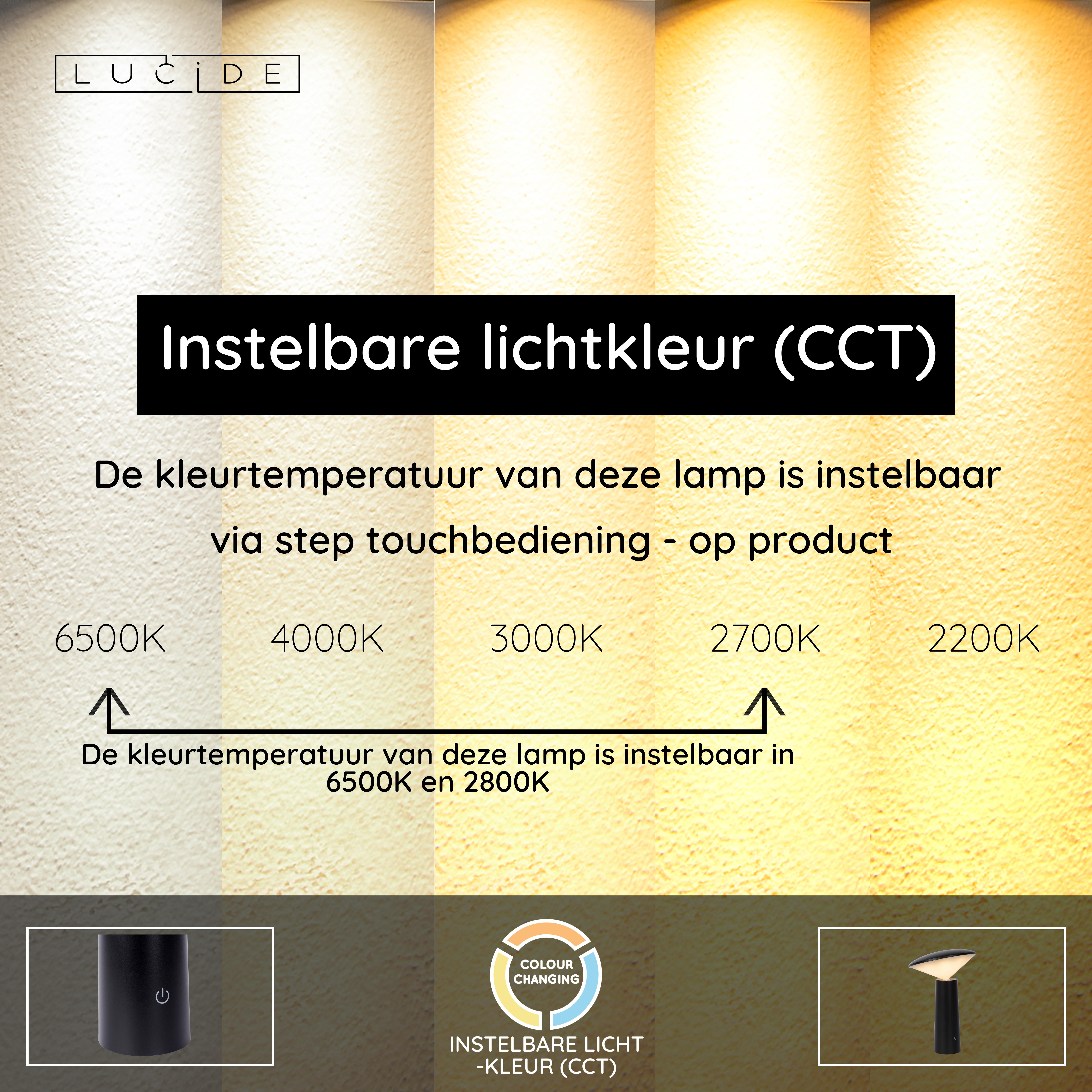 - Kleurtemperatuur instelbaar via step touchbediening op product (2800K-6500K)