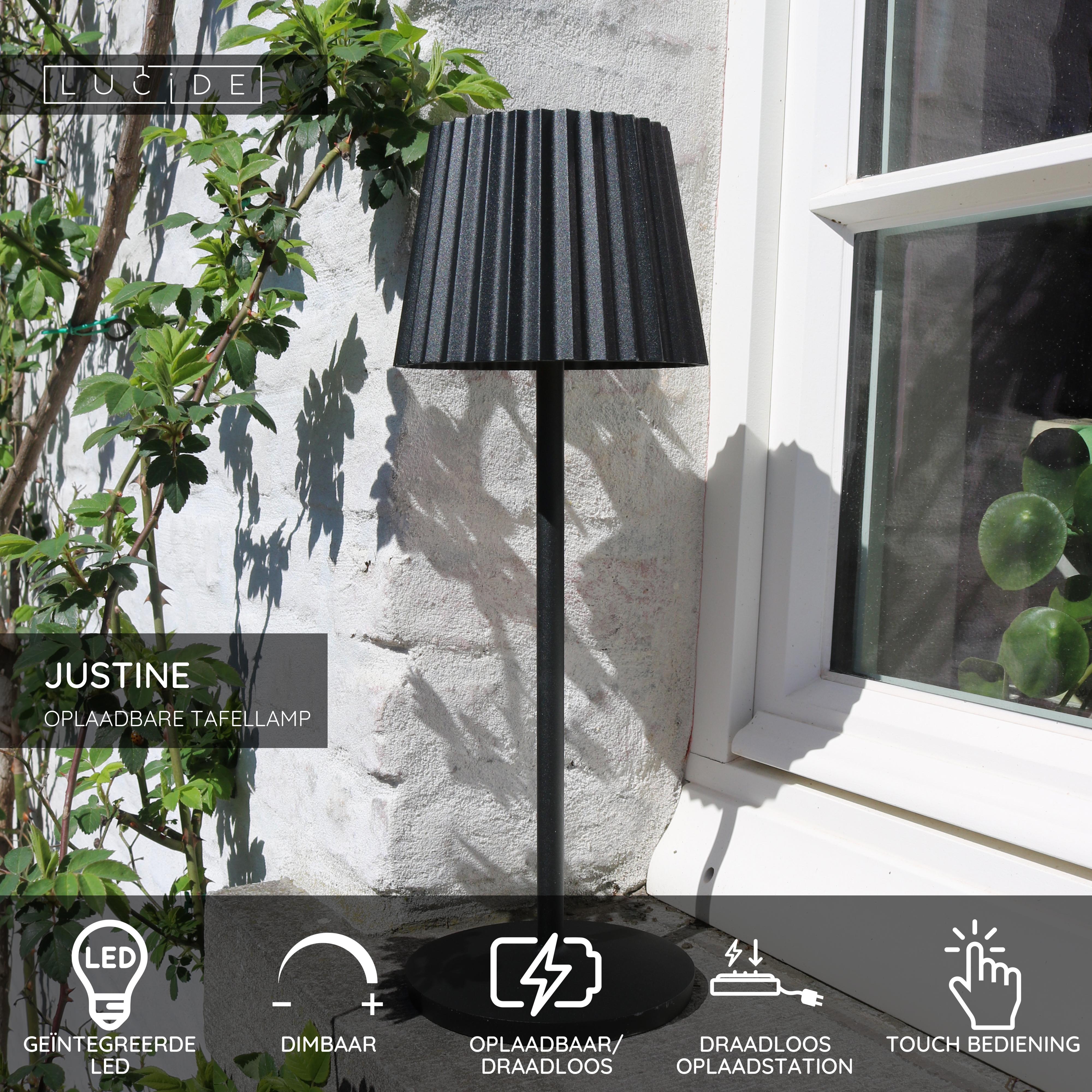 Lucide JUSTINE - Oplaadbare Tafellamp Binnen/Buiten - Accu/Batterij - LED Dimb. - 1x2W 2700K - IP54 - Met draadloos oplaadstation - Zwart