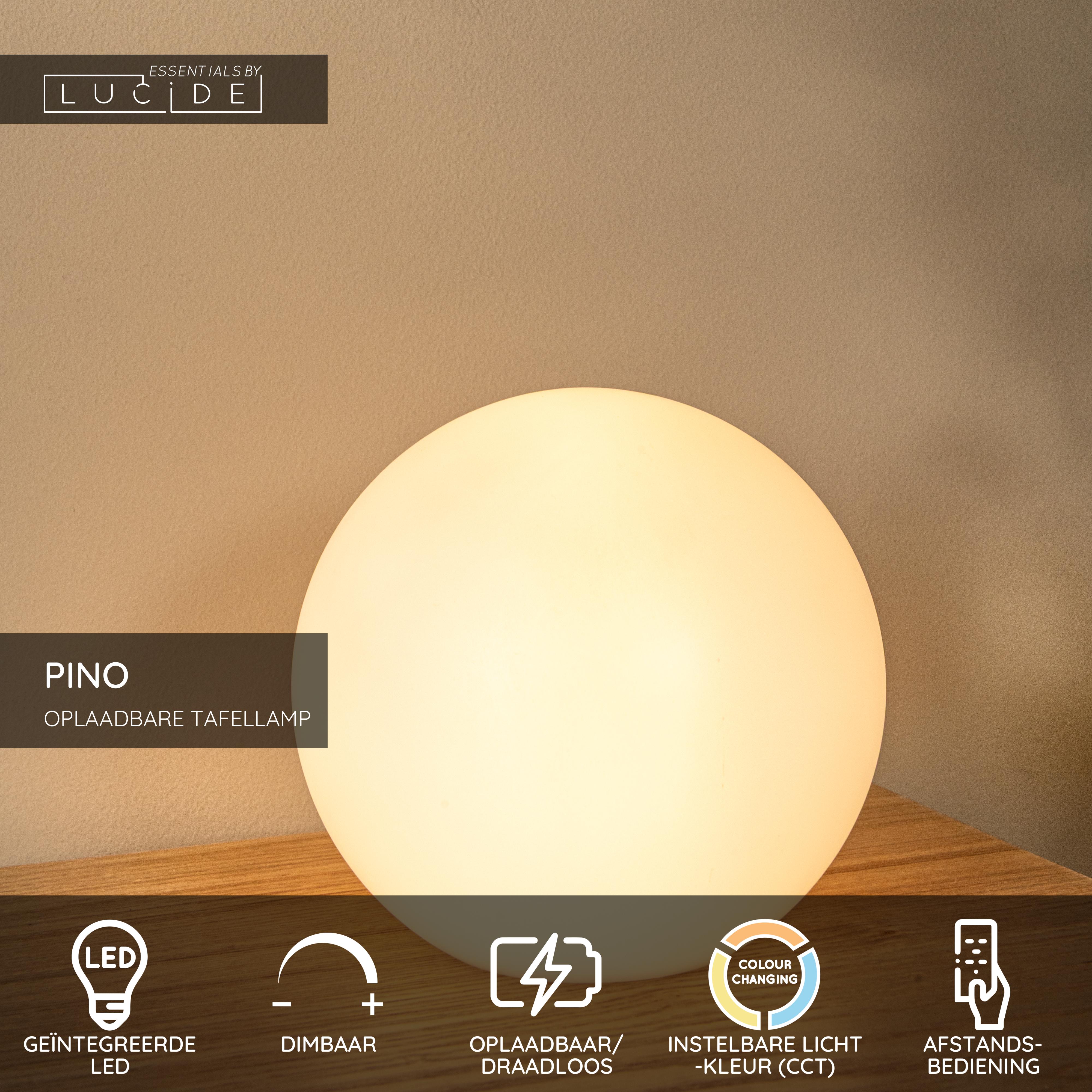 Lucide PINO - Oplaadbare Tafellamp Binnen/Buiten - Accu/Batterij - LED Dimb. - CCT - 1x1,5W 2700K/6500K - IP65 - RGB - Wit | Essential