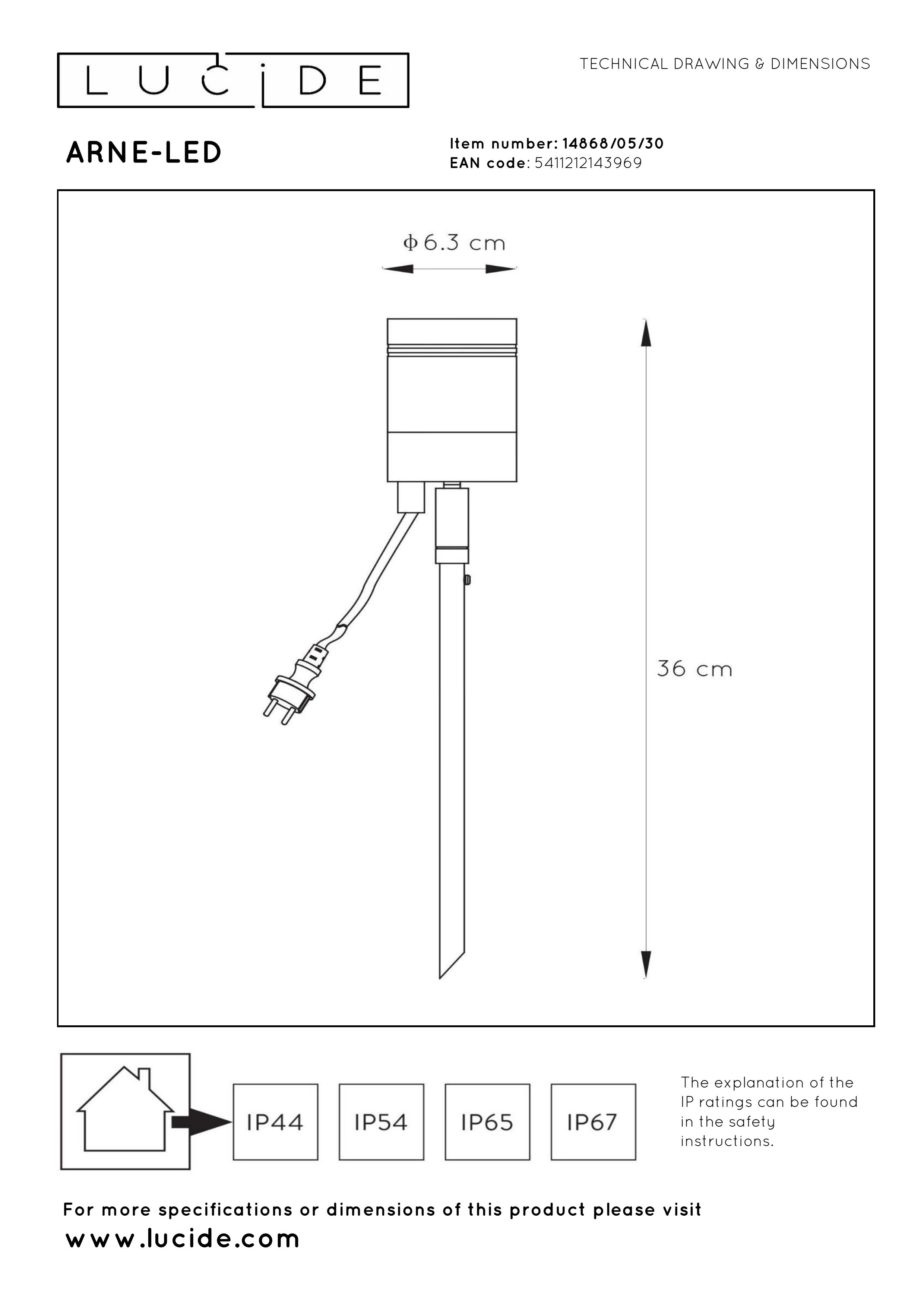 Lucide ARNE-LED - Tuinspot - Ø 6,3 cm - LED - GU10 - 1x5W 2700K - IP44 - Zwart