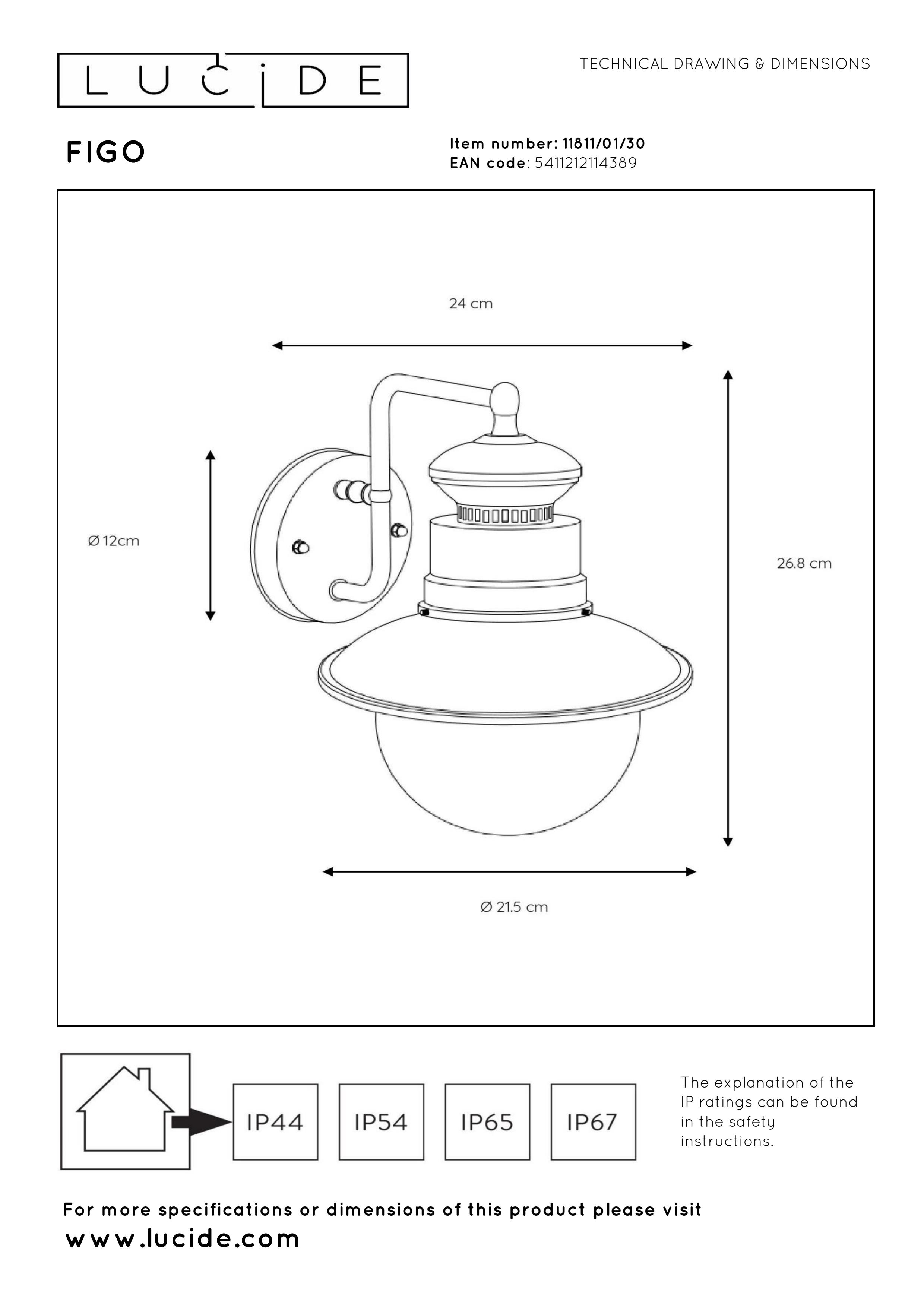 Lucide FIGO - Wandlamp Binnen/Buiten - Ø 21,5 cm - 1xE27 - IP44 - Zwart