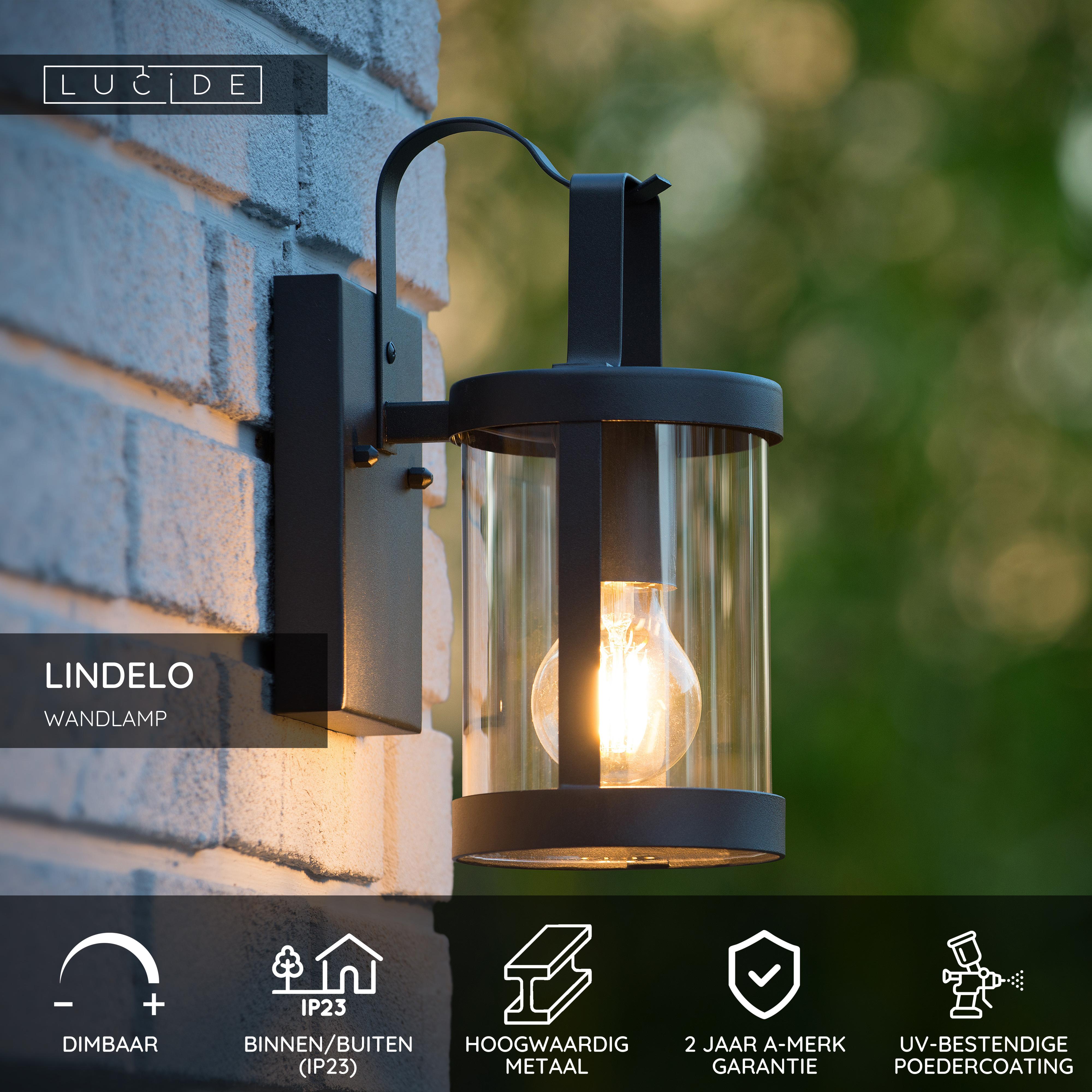 Lucide LINDELO - Wandlamp Binnen/Buiten - 1xE27 - IP23 - Zwart