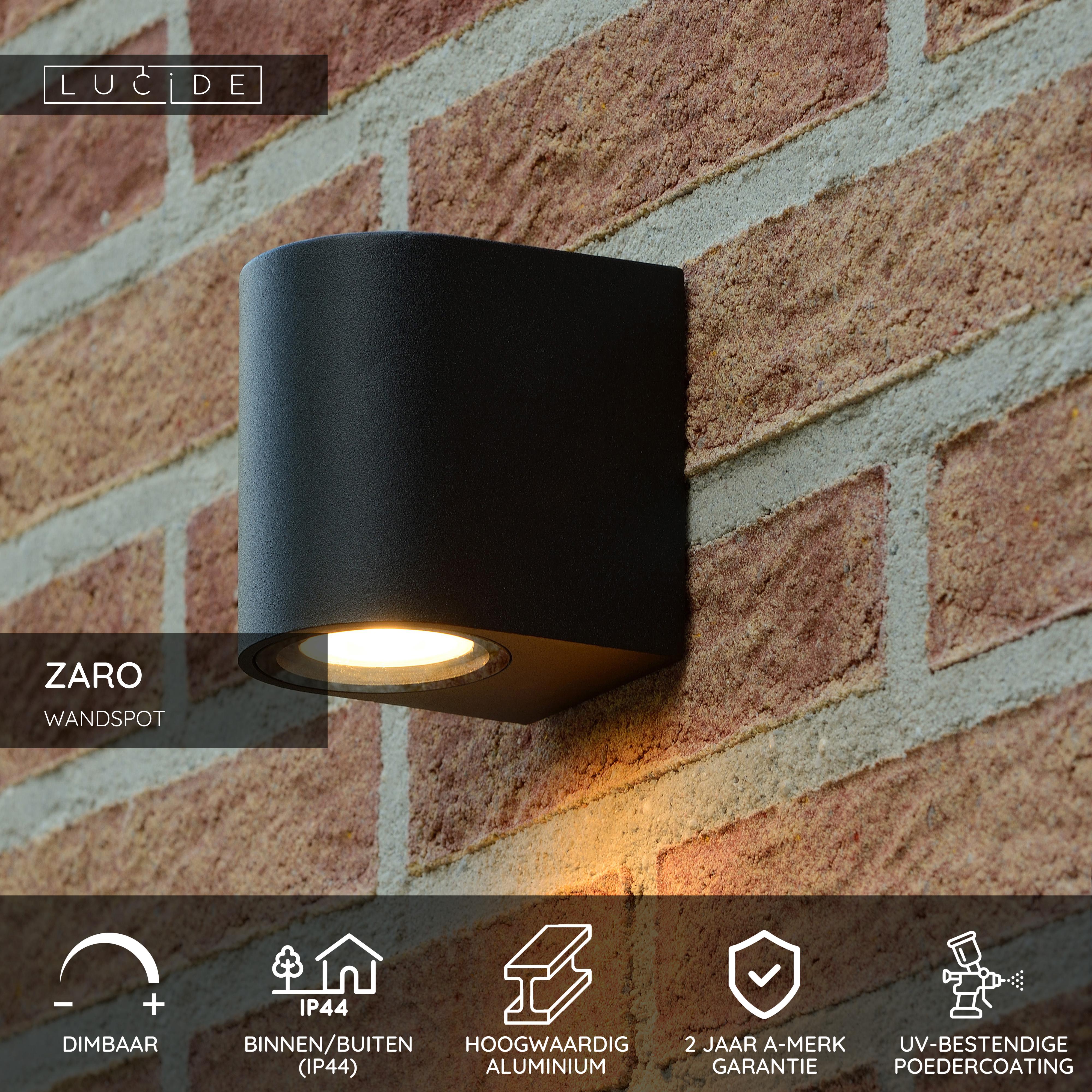 Lucide ZARO - Wandspot / Wandlamp Binnen/Buiten - 1xGU10 - IP44 - Zwart