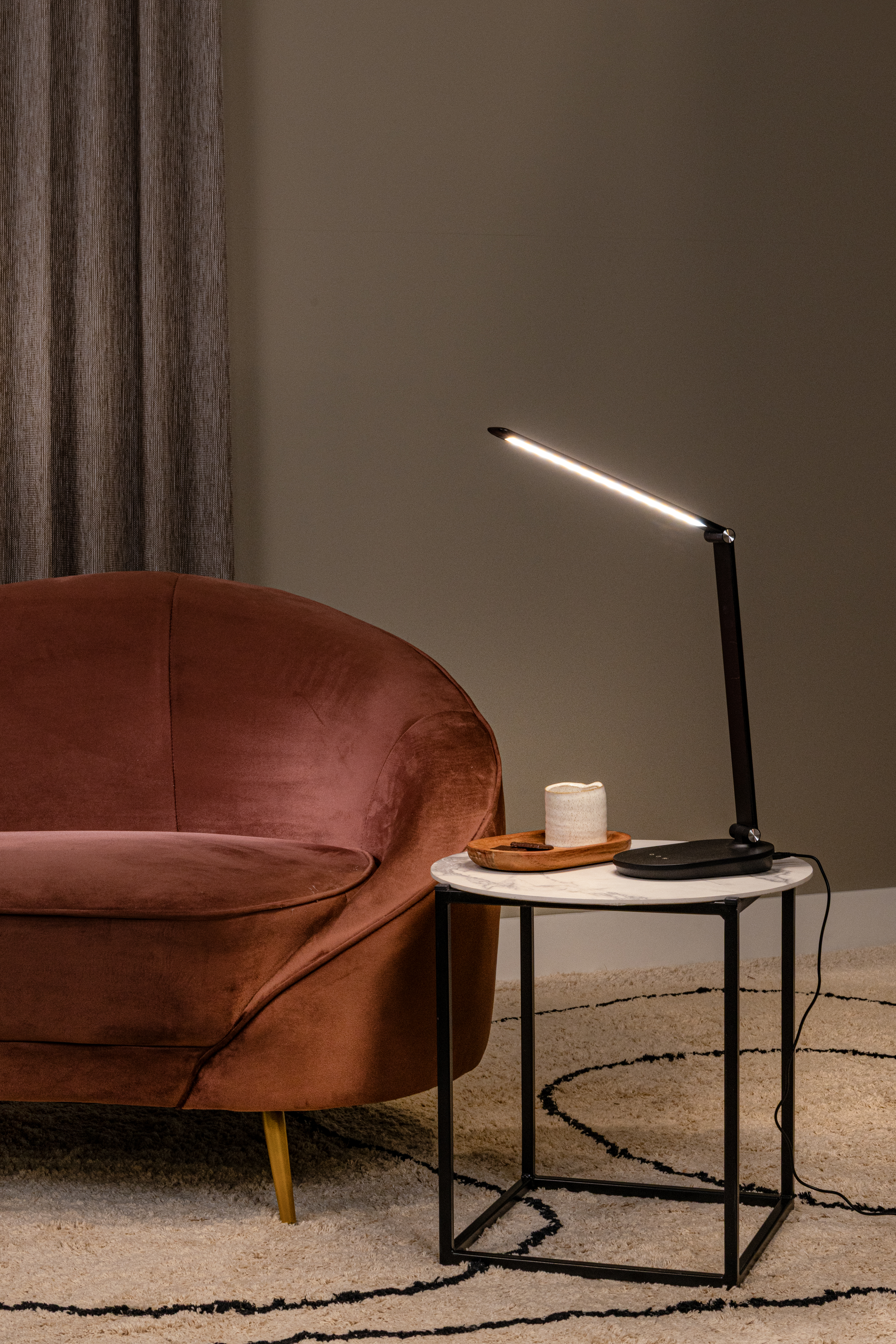 Is het tijd om je even helemaal op je werk, studies of literatuur te focussen? Schakel dan Aldwin in als trouwe metgezel. Deze functionele bureaulamp uit hoogwaardig abs is uitgerust met een geïntegreerde dimbare ledlamp met warm wit licht die je gemakkelijk bedient via de touchsensor op de lamp. Aldwin is bovendien verticaal kantelbaar zodat je de lichtstraal optimaal afstelt op jouw noden. Het rechthoekige design is subtiel en tijdloos waardoor jij je eindeloos concentreert. Ga voor productiviteit en efficiënte met Aldwin aan je zij.