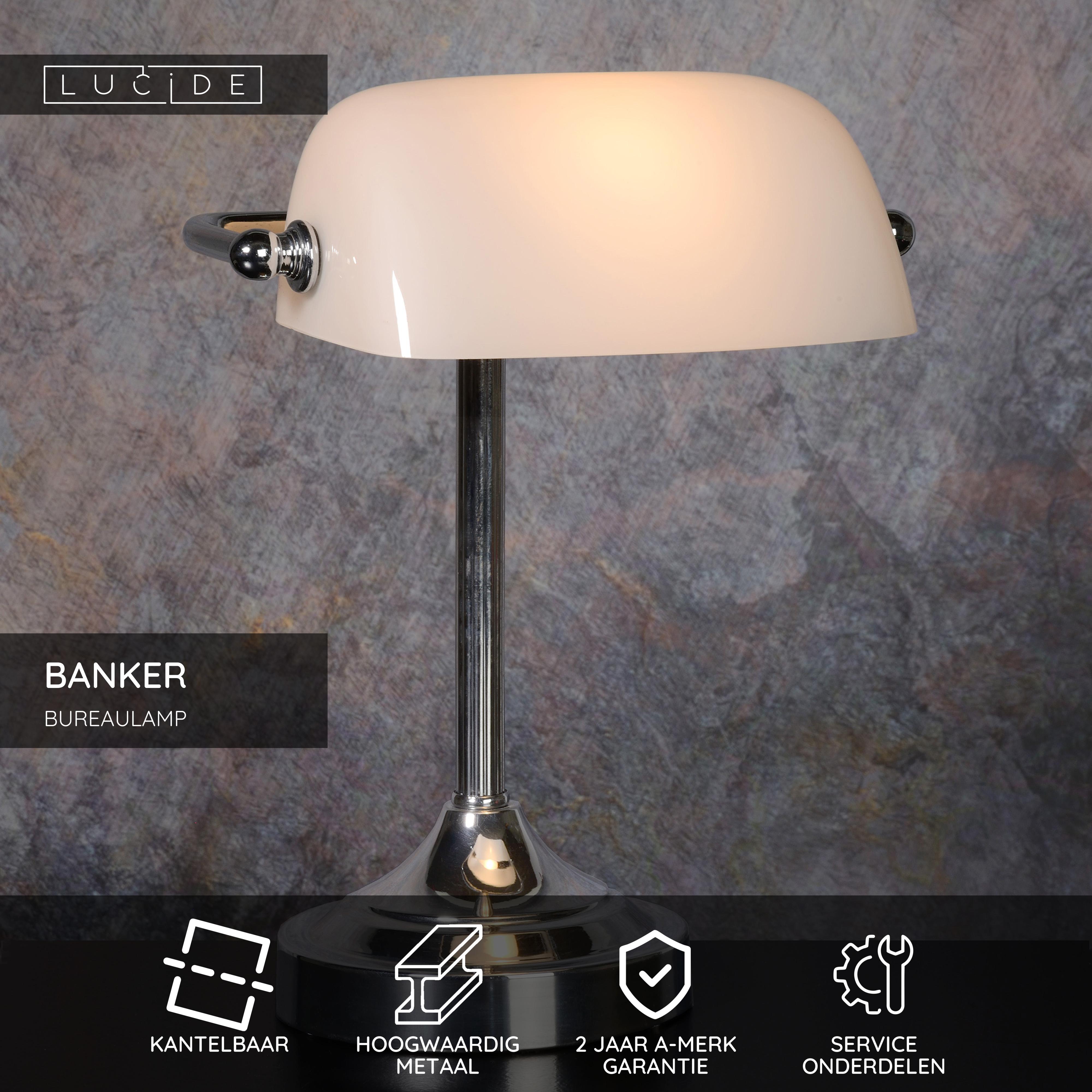 BANKER by Lucide is de bekende notaris- of bankierslamp in een mini versie. Deze bureaulamp is van alle tijden en past zowel in een klassiek als in een modern interieur. Sfeervol in de kamer en functioneel op het bureau of secretaire.