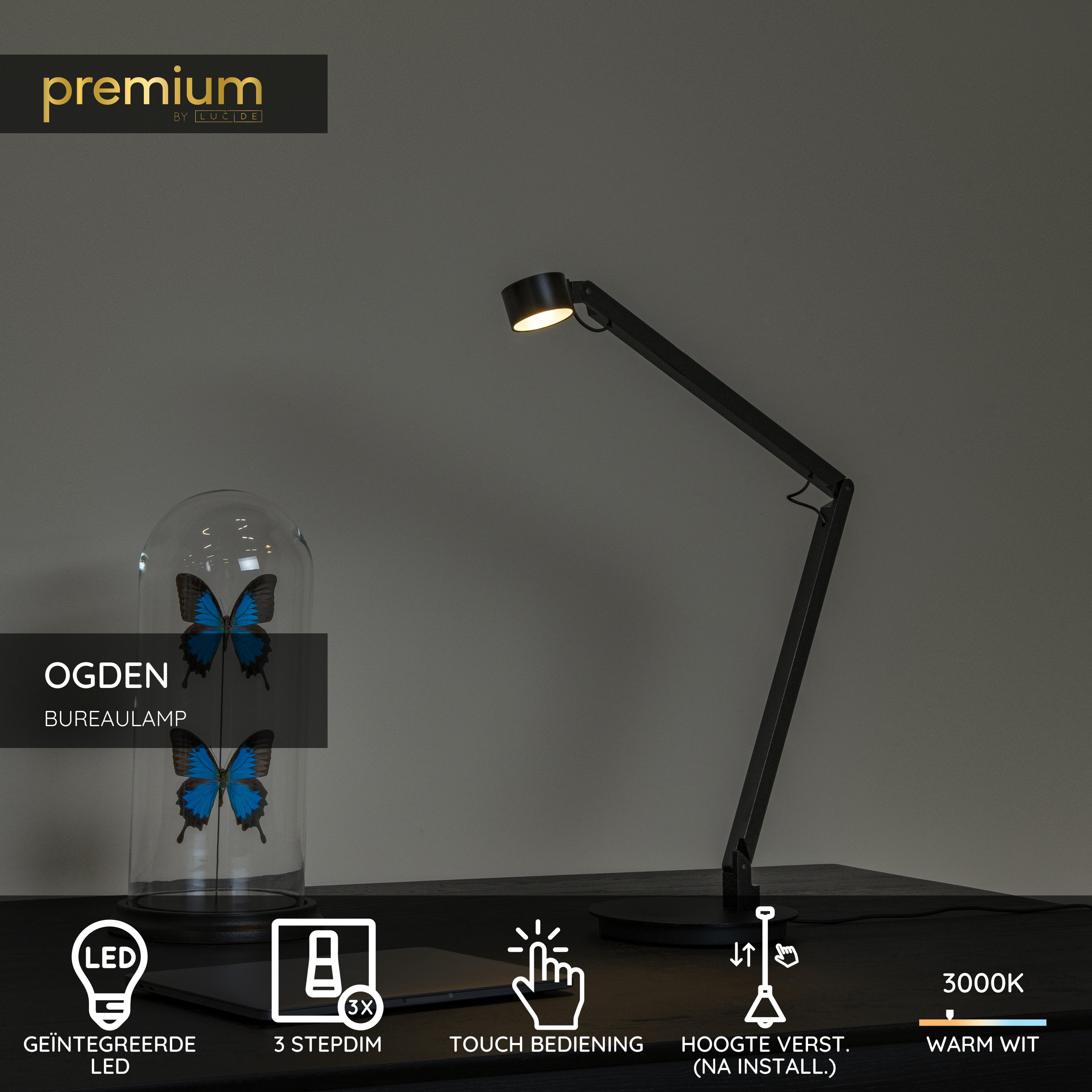 Lucide OGDEN - Bureaulamp - LED 3 StepDim - 1x7W 3000K - Zwart | Premium