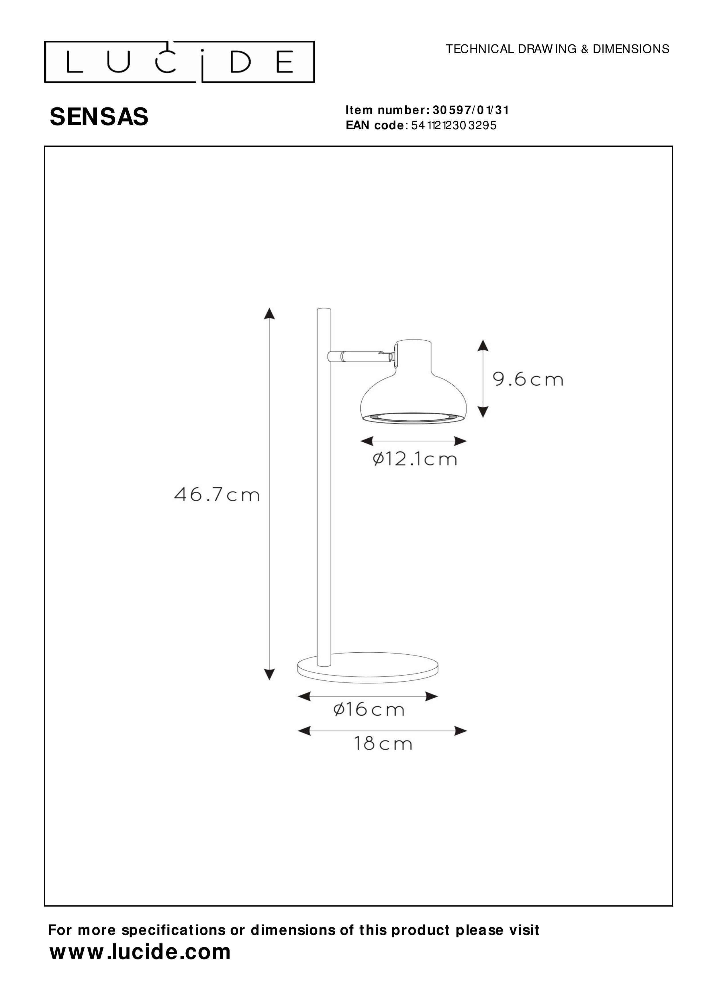 Lucide SENSAS - Bureaulamp - Ø 18 cm - 1xGU10 (ES111) - Wit