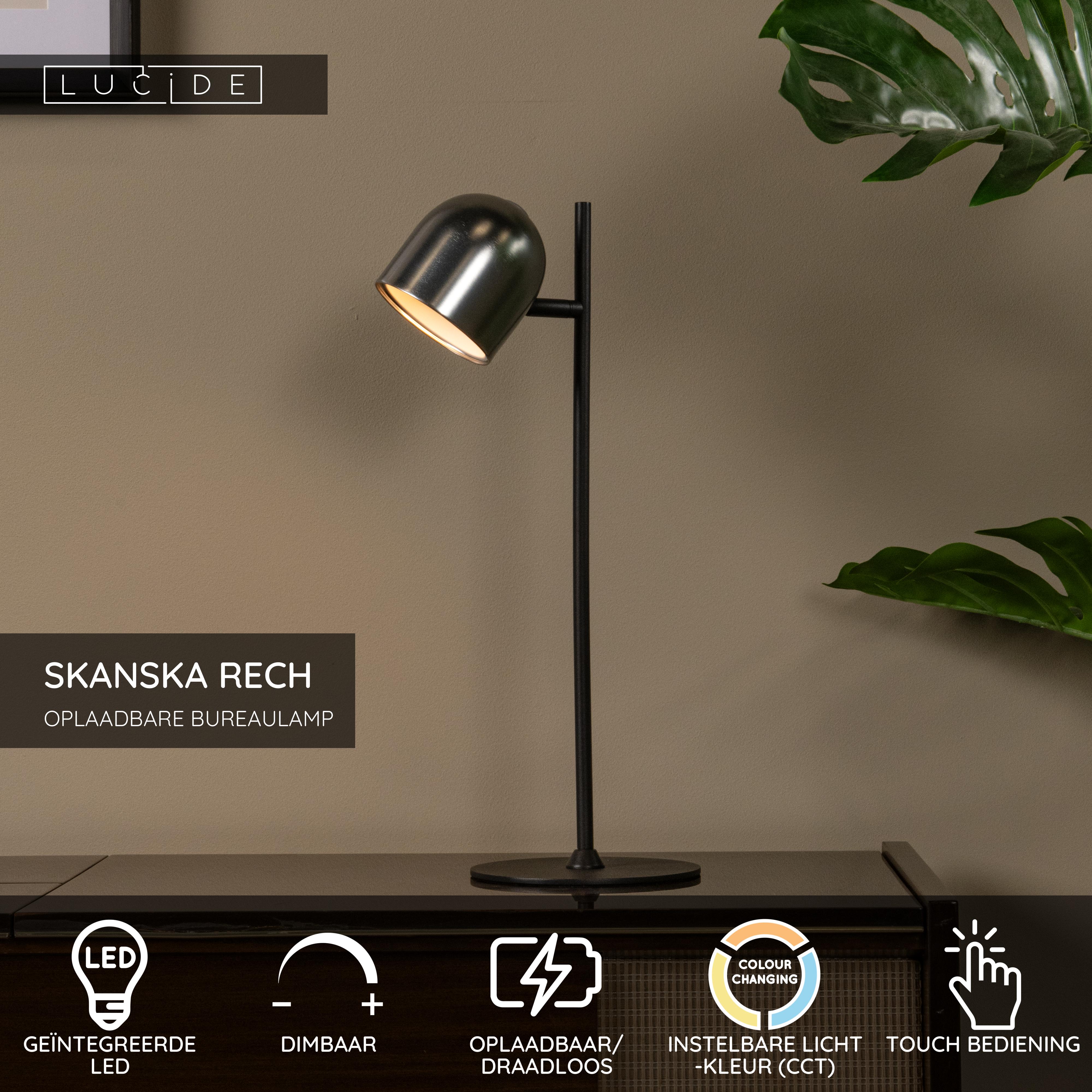 Lucide SKANSKA RECH - Oplaadbare Bureaulamp Binnen/Buiten - Accu/Batterij - LED Dimb. - CCT - 1x3W 3000K/6000K - IP44 - Grijs ijzer