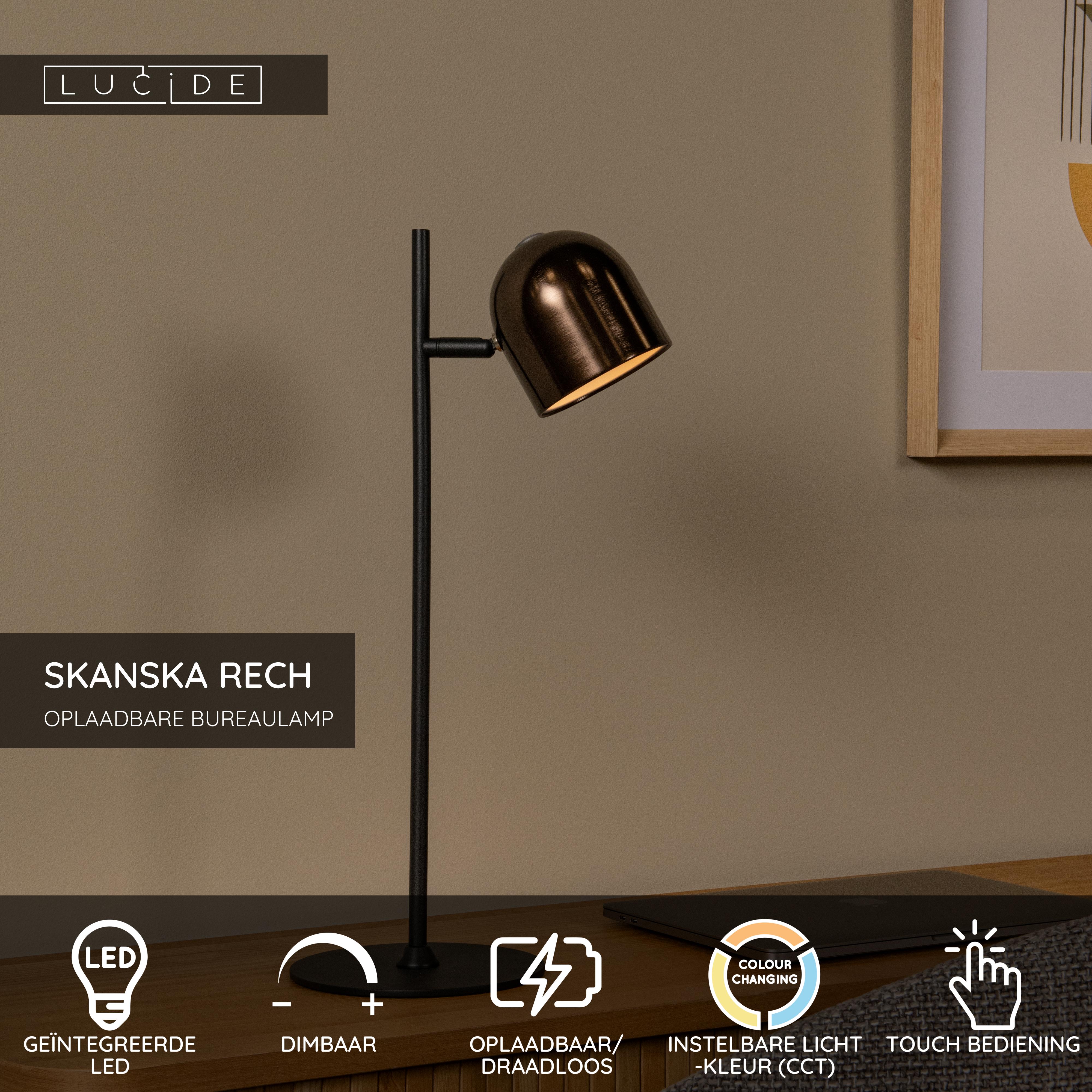 Lucide SKANSKA RECH - Oplaadbare Bureaulamp Binnen/Buiten - Accu/Batterij - LED Dimb. - CCT - 1x3W 3000K/6000K - IP44 - Koffie