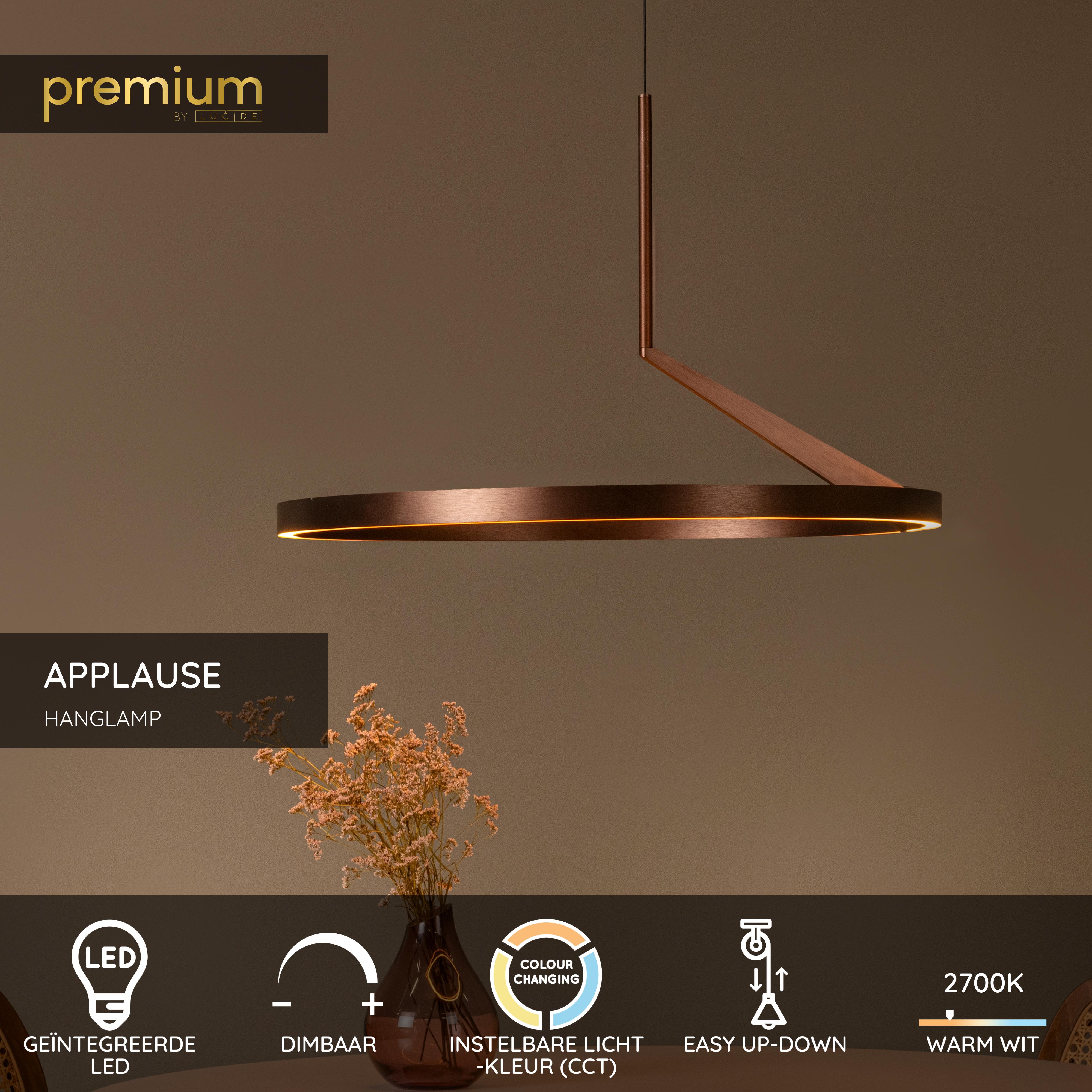 Lucide APPLAUSE - Hanglamp - Ø 60 cm - LED Dimb. - CCT - 1x32W 2700K/4000K - Handbewegingssensor - Koffie | Premium