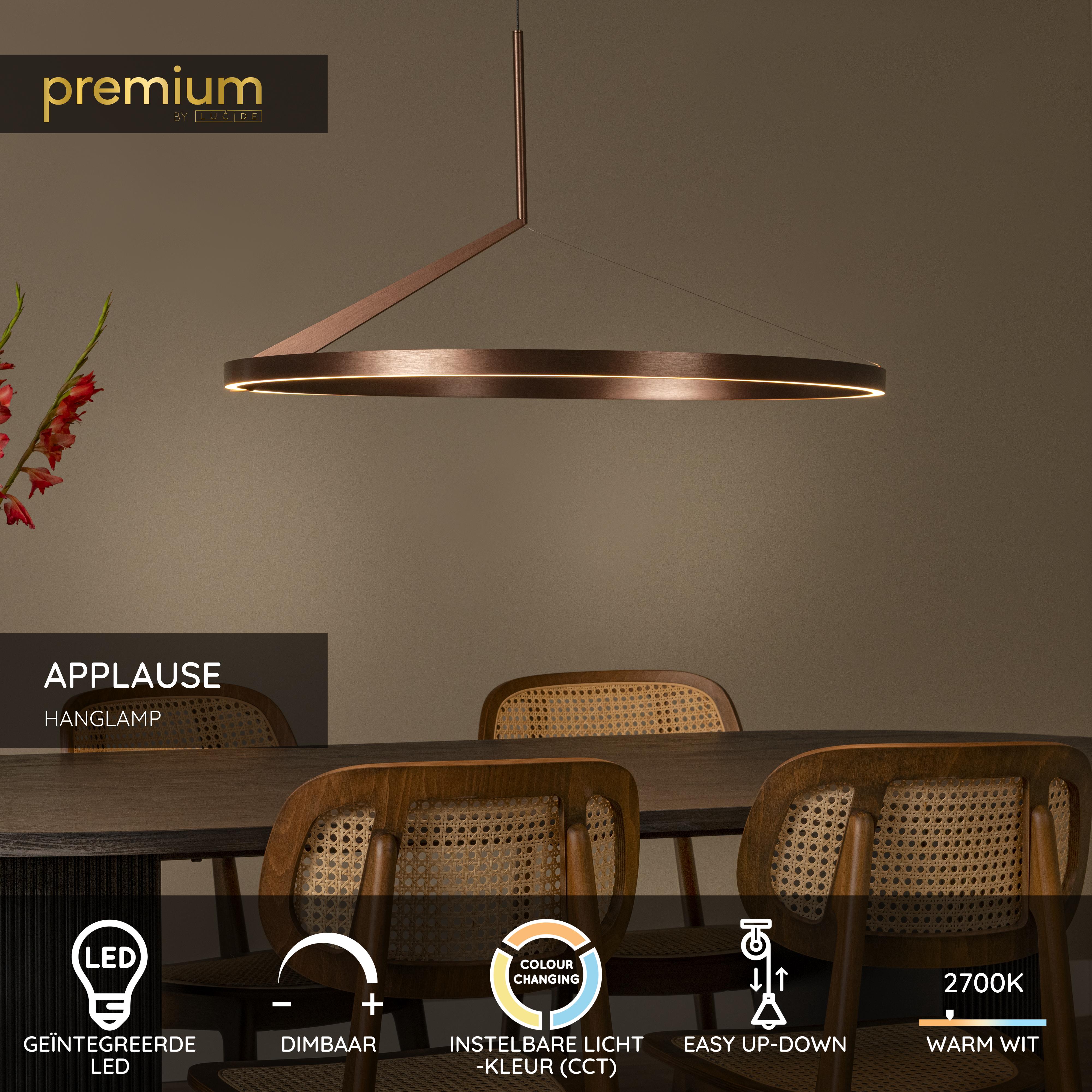 Lucide APPLAUSE - Hanglamp - Ø 80 cm - LED Dimb. - CCT - 1x50W 2700K/4000K - Handbewegingssensor - Koffie | Premium