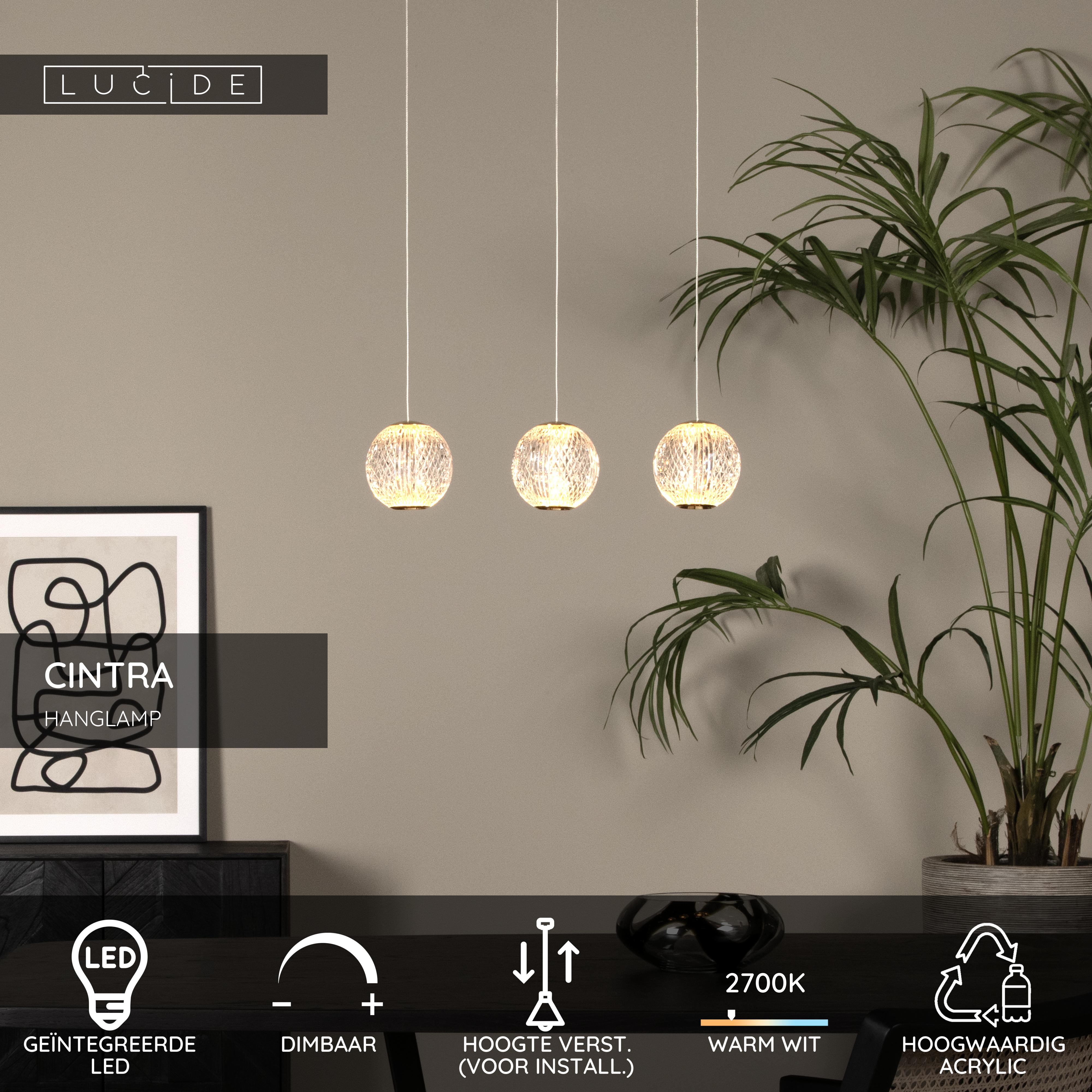 Lucide CINTRA - Hanglamp - LED Dimb. - 3x4,7W 2700K - Transparant