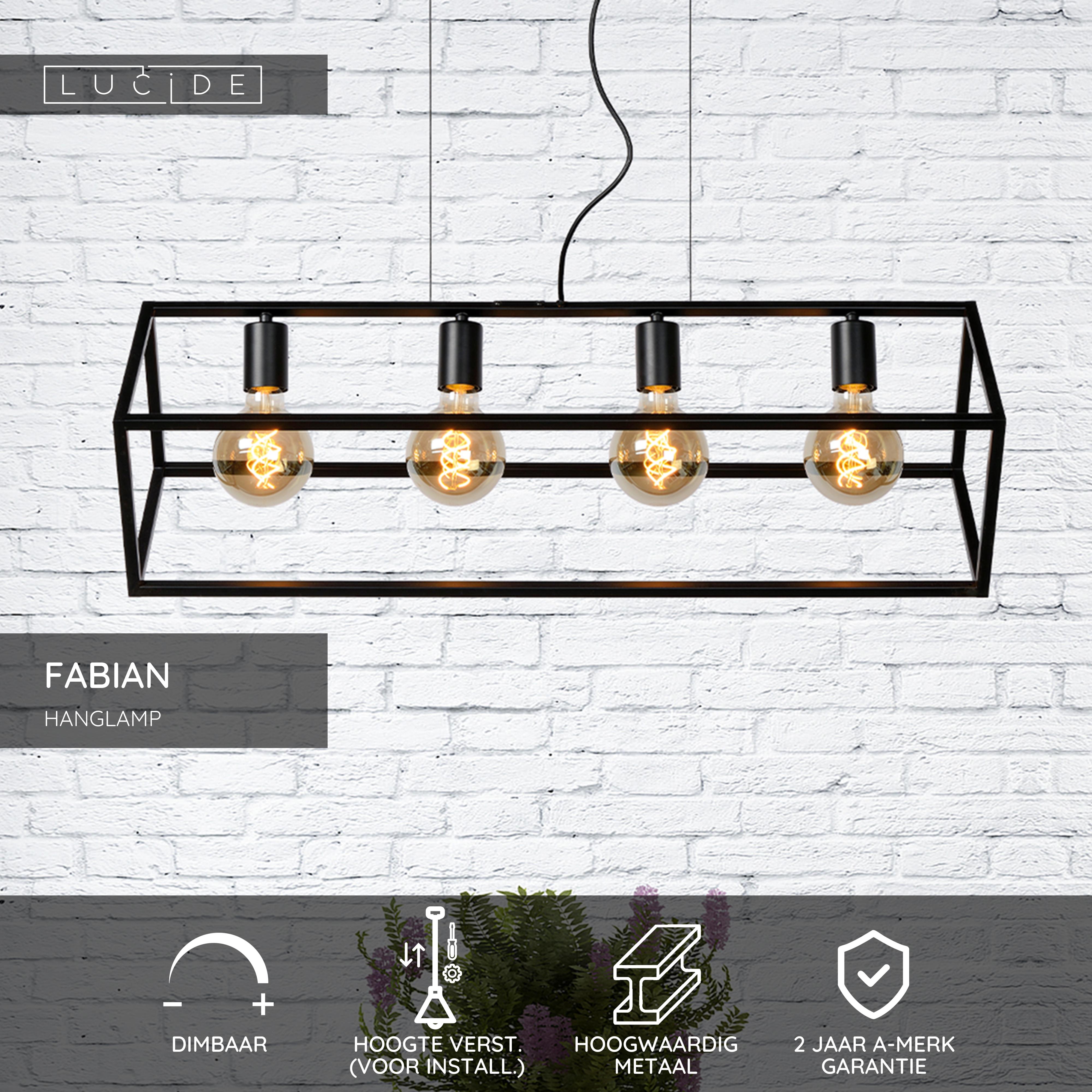 Lucide FABIAN - Hanglamp - 4xE27 - Zwart