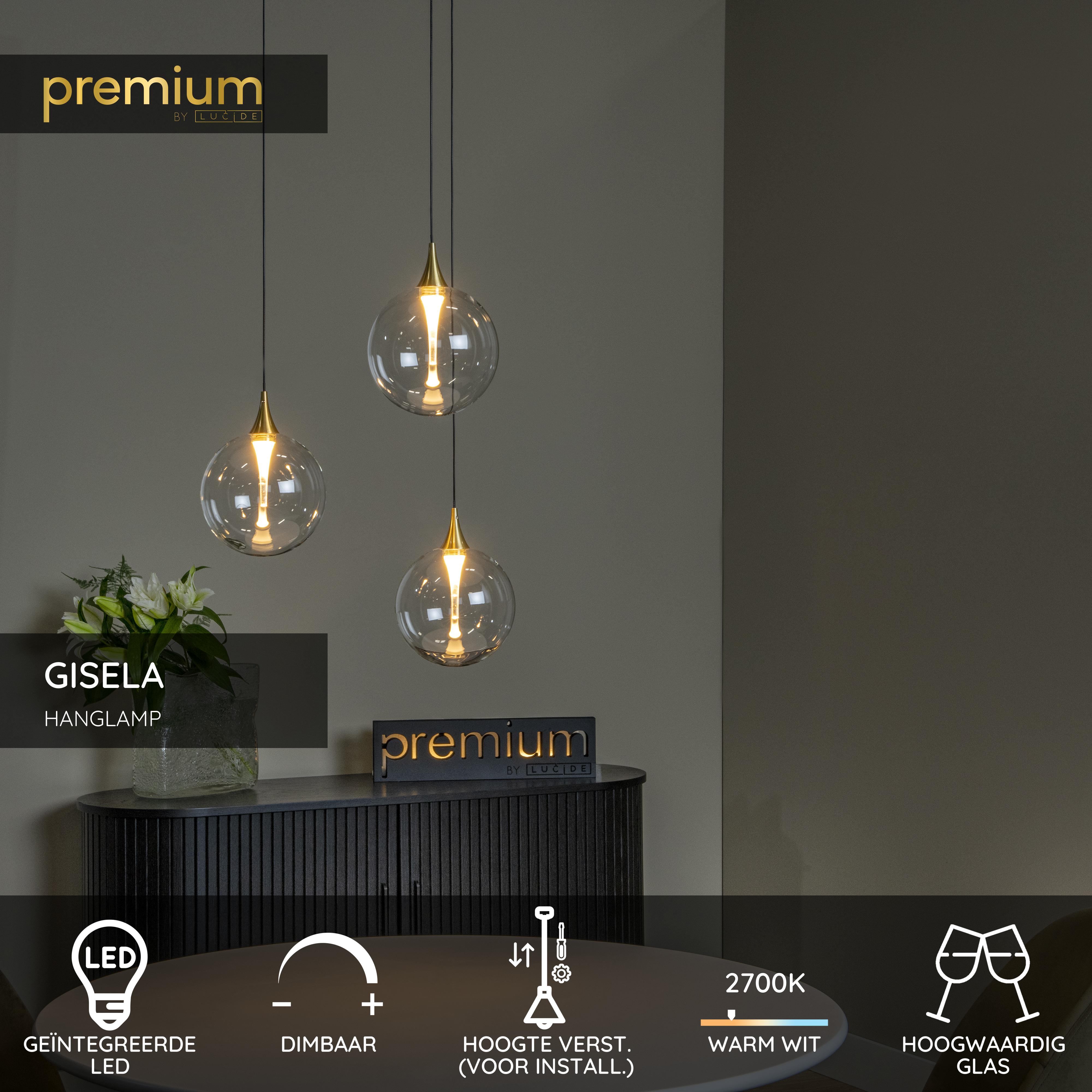 Lucide GISELA - Hanglamp - Ø 36 cm - LED Dimb. - 3x4,3W 2700K - Transparant | Premium