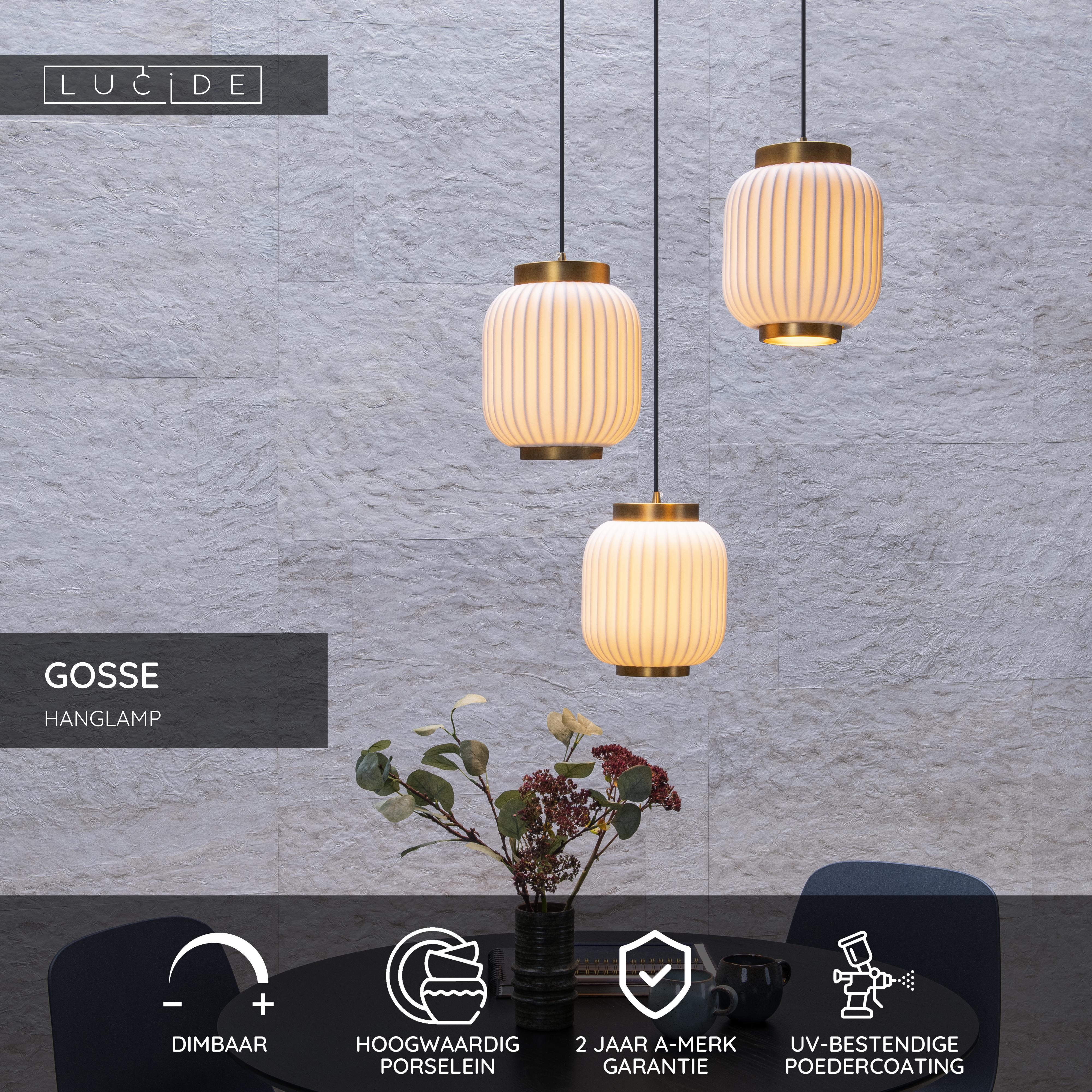 Lucide GOSSE - Hanglamp - 3xE27 - Wit