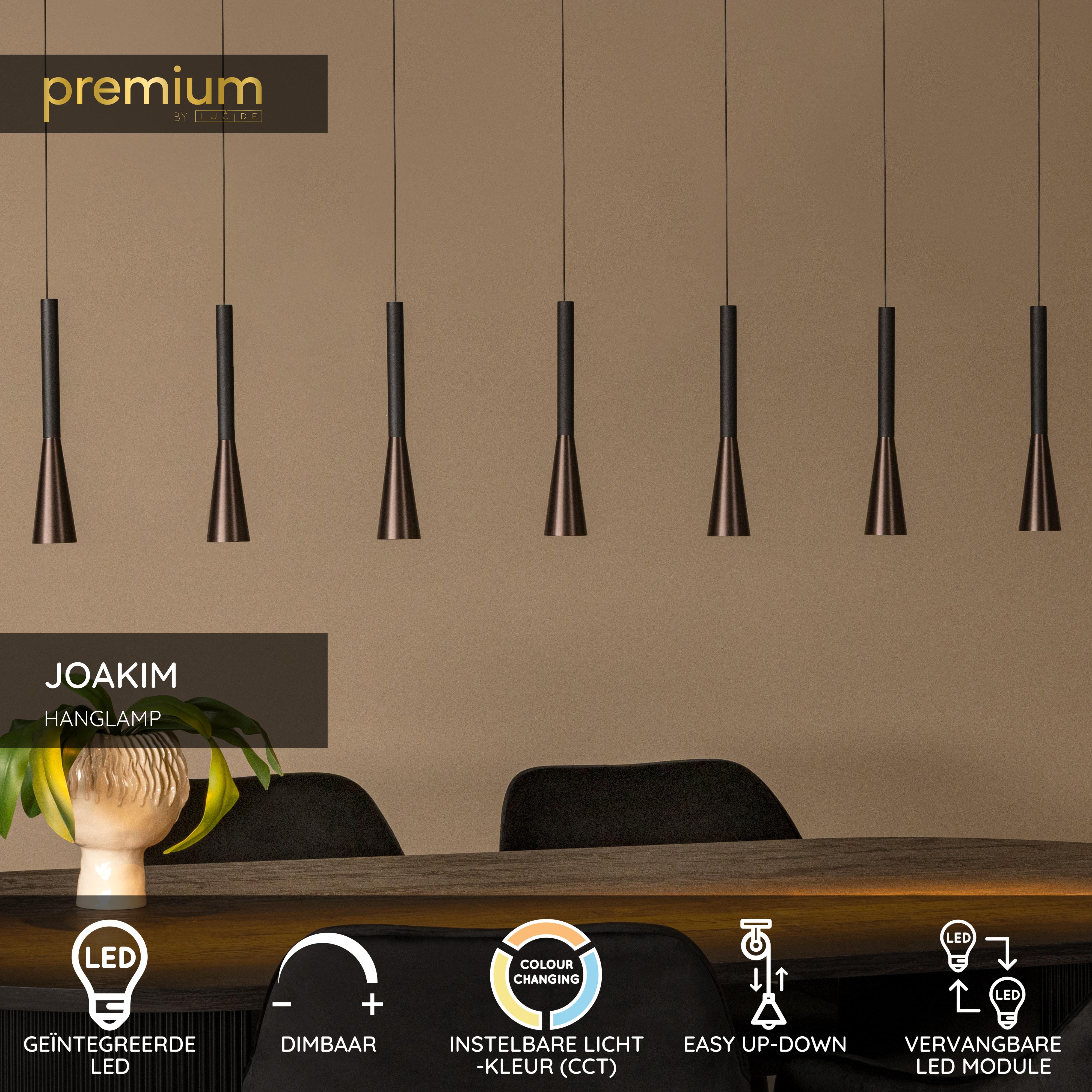 Lucide JOAKIM - Hanglamp - LED Dimb. - CCT - 7x6,2W 2700K/4000K - Met vervangbare LED-module - Koffie | Premium
