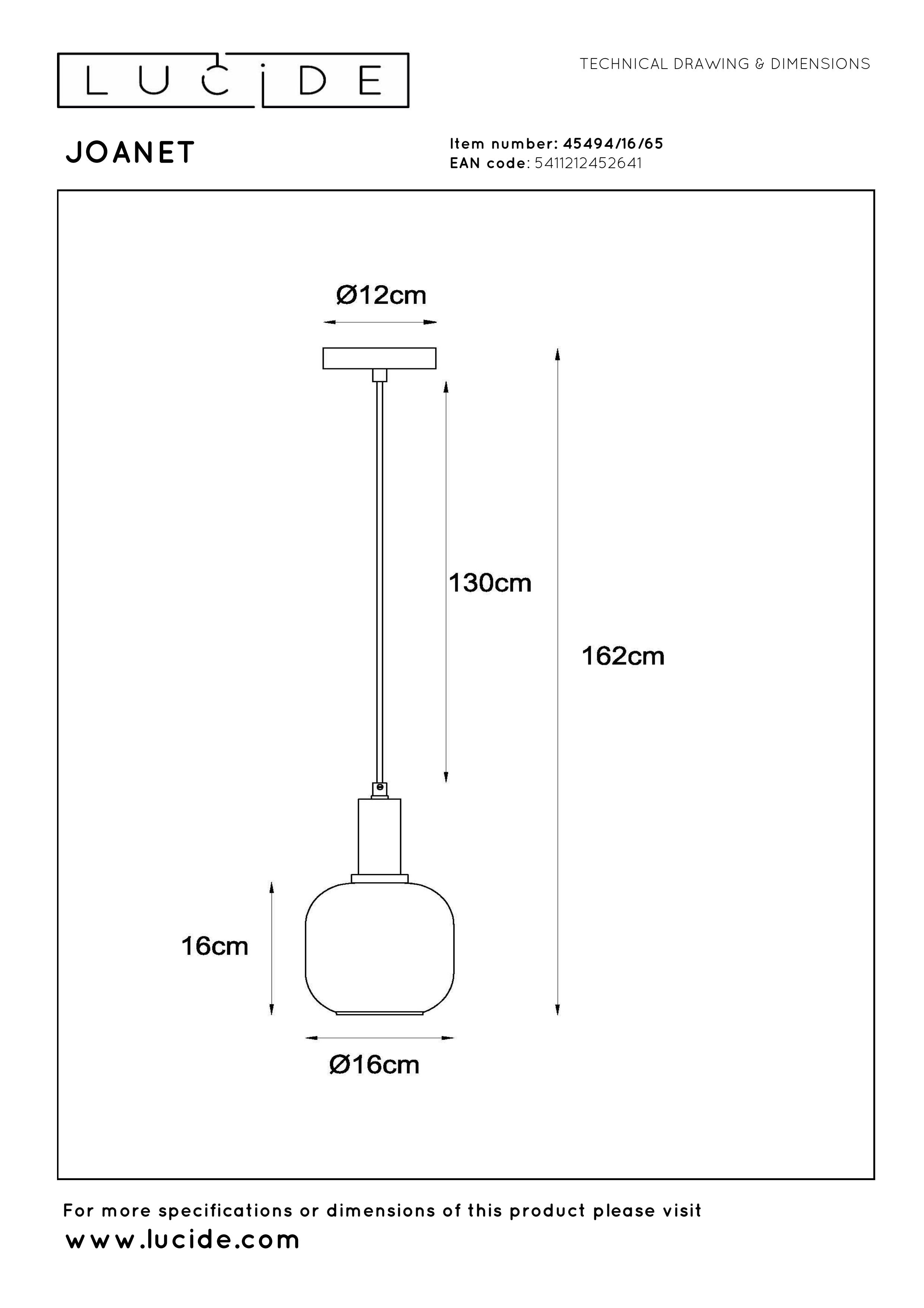 Lucide JOANET - Hanglamp - Ø 16 cm - 1xE27 - Fumé
