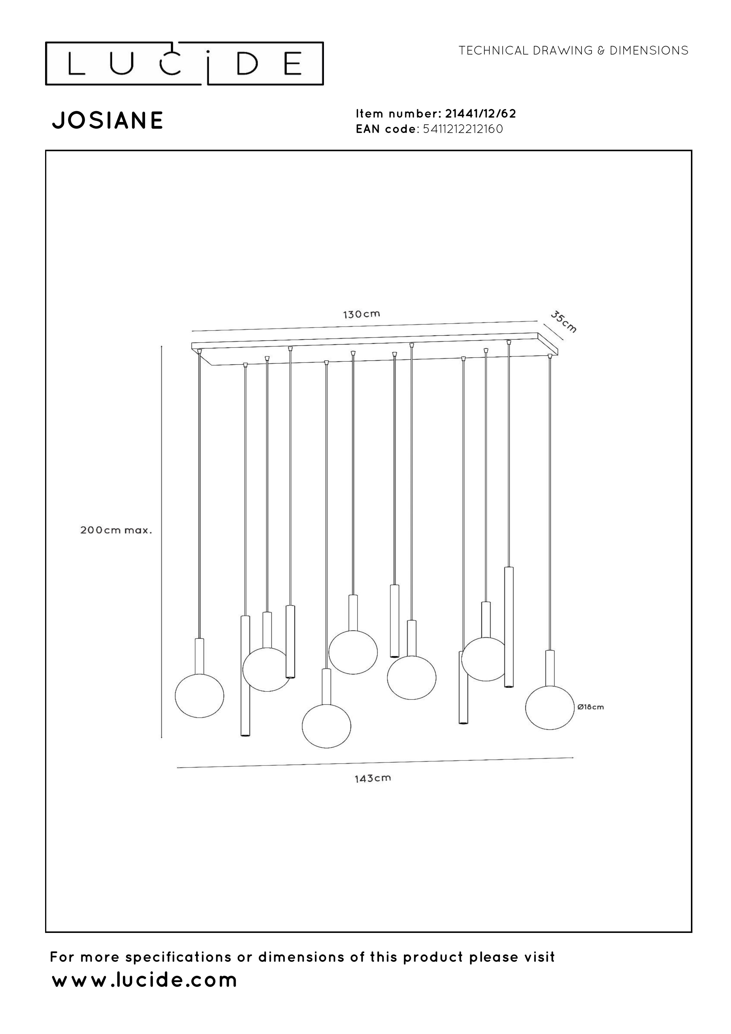 Geef jouw eetruimte of leefkeuken een artistieke upgrade met de Lucide JOSIANE. Deze expressieve hanglamp combineert modern design met technisch vernuft. De langwerpige pendellamp van zwart metaal herbergt maar liefst 12 lichtpunten (7x G9 & 5x GU10), wat zorgt voor een dynamisch samenspel van diffuus en gericht licht. Dankzij het in hoogte verstelbare ontwerp (tot 200 cm vóór installatie) en een royale breedte van 143 cm, komt JOSIANE volledig tot zijn recht boven lange tafels of kookeilanden. Dimbaar via een externe dimmer en geschikt voor LED-lichtbronnen. Kies voor lichtarchitectuur die gezien mag worden.