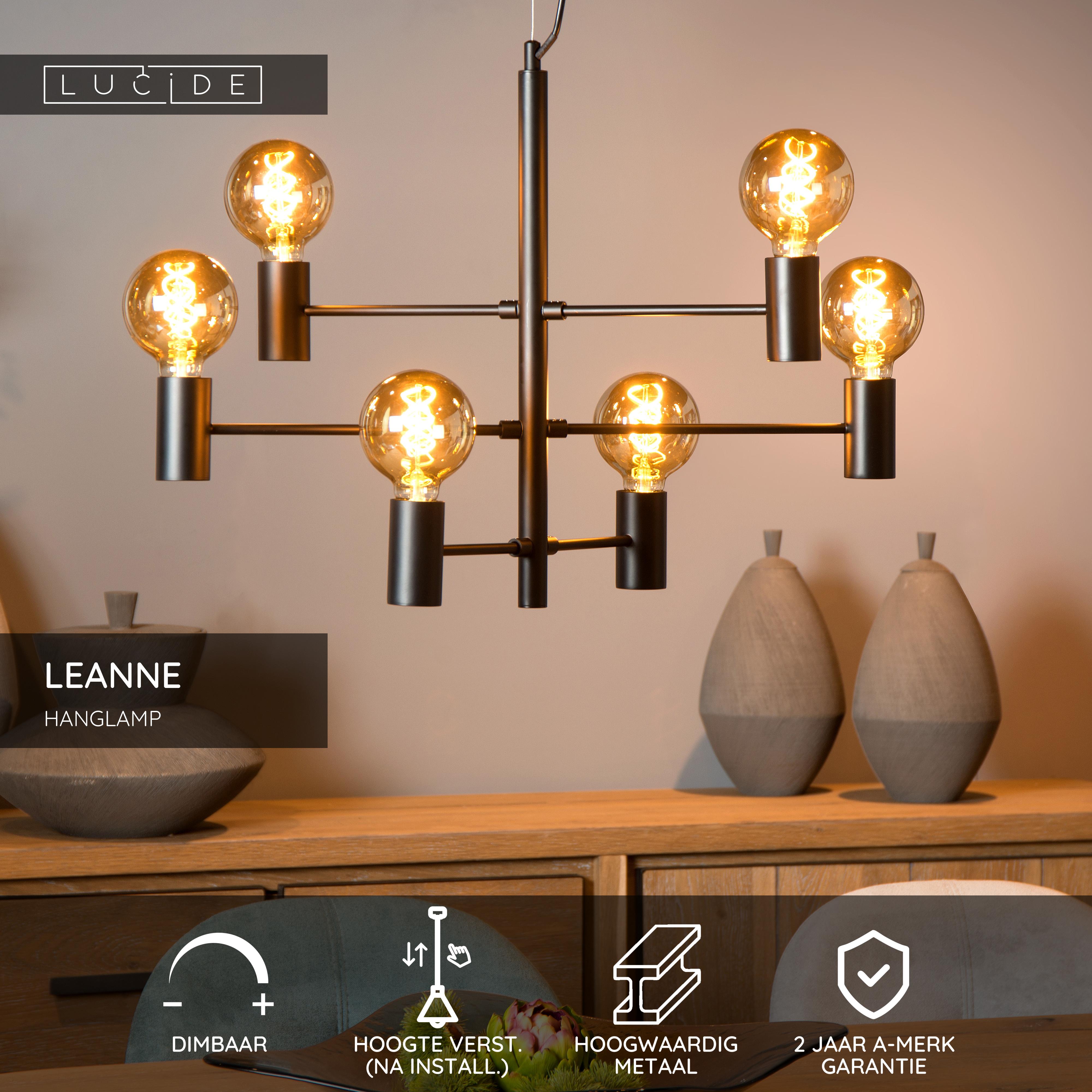Lucide LEANNE - Hanglamp - 6xE27 - Zwart